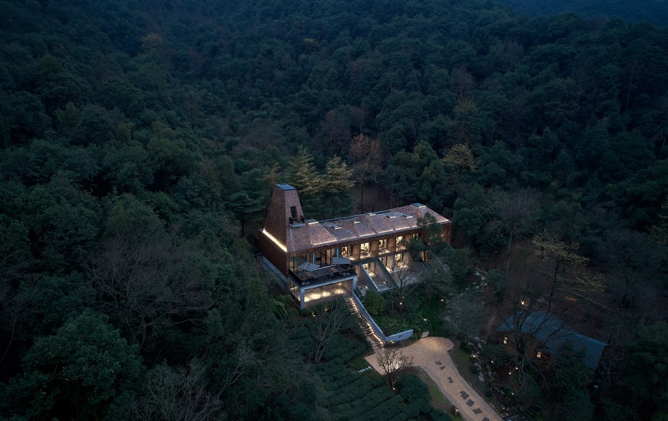 ▼建筑植根于茶园,与松树互映,the site’s characteristics: protect the ecology, get rooted tea gardens and ablaze with pines