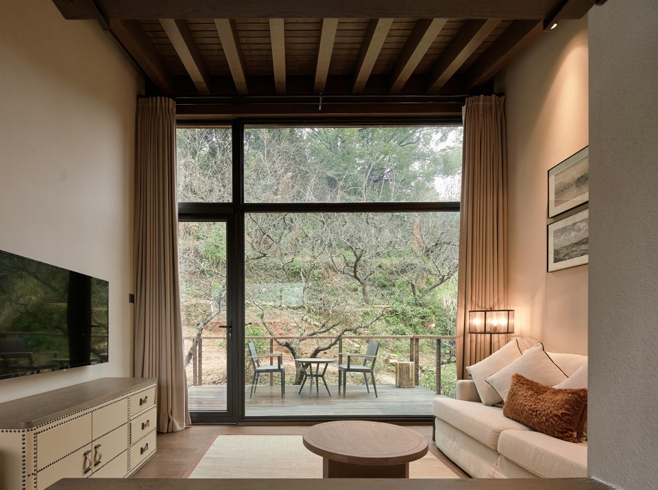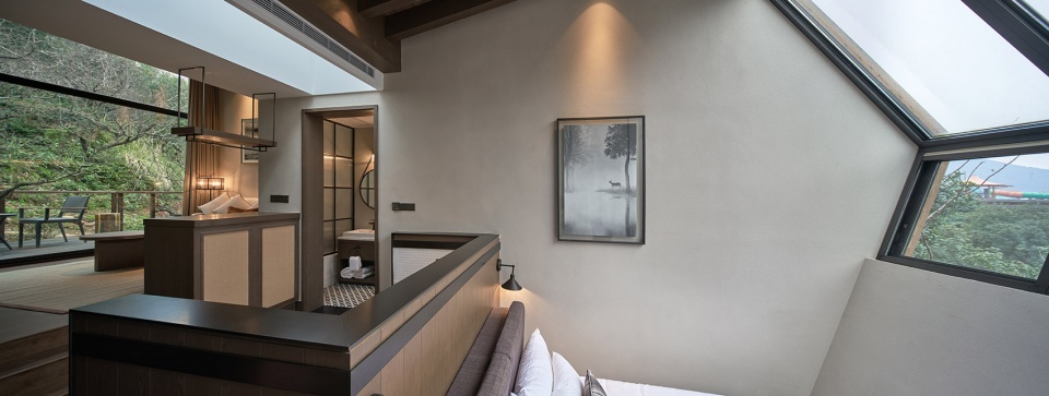 Being the mid-residence, guest room shows the rare north-south permeability and the outside landscape could come into sight to the maximum extent. Coupled with indoor height difference, a rich spatial layering sense is formed with each functional space being relatively independent but also connected with one another. By these unique space experiences, we hope everyone who enters the “Star Cube” could feel different fun.