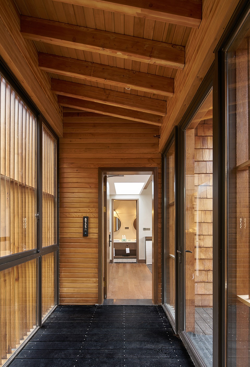 ▼中间入户使客房呈现少有的南北通透感,the entrance hall is set in the middle of the building to provide a north-south permeability
