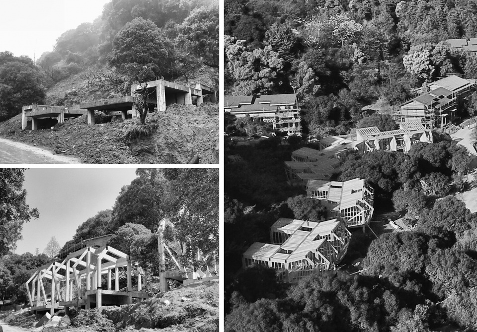 Construction in natural environment should not only emphasize ecological protection, including big trees and landform, but also ensure the comfort of the building itself, especially heat preservation and good moisture-proof property. Taking all factors into consideration, the main structure adopts a heavy wood structure system, and in view of the humid attribute in mountainous areas, the foundation and bottom plate adopt an overhead reinforced concrete bottom plate. The main structural components are pre-made by factory and then transported to the site for assembly. Without wet operation and dust, the construction site is rather clean, simple, efficient and environment-friendly.
