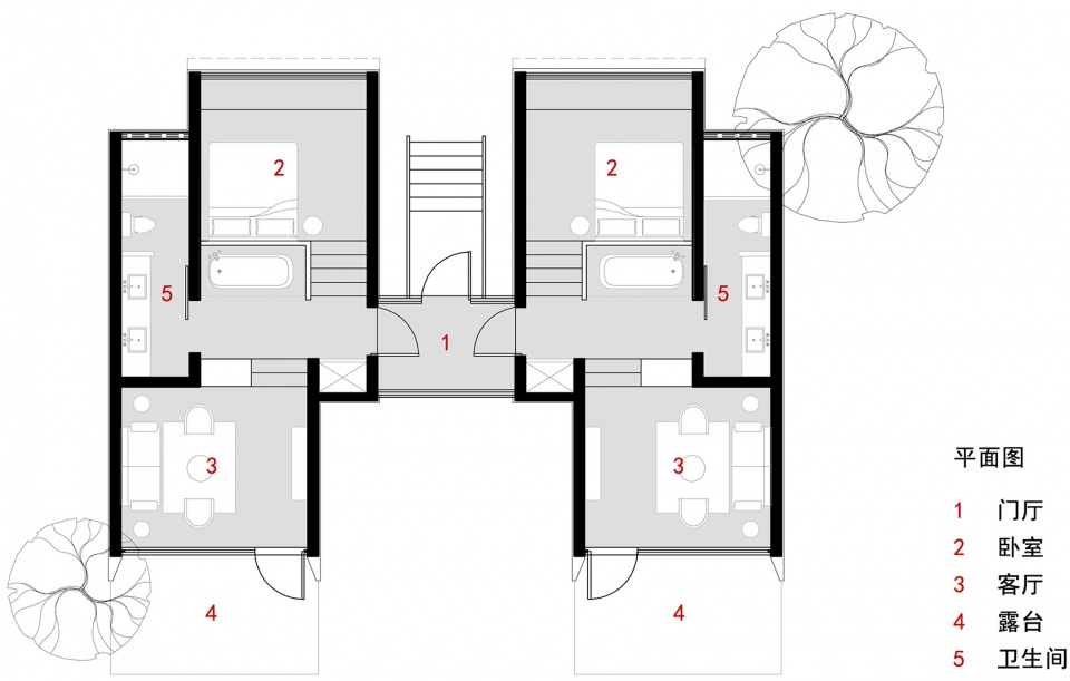▼建筑呈现出一种伴随大树“生长”的状态,the architecture “grows” along with the vibrant forest