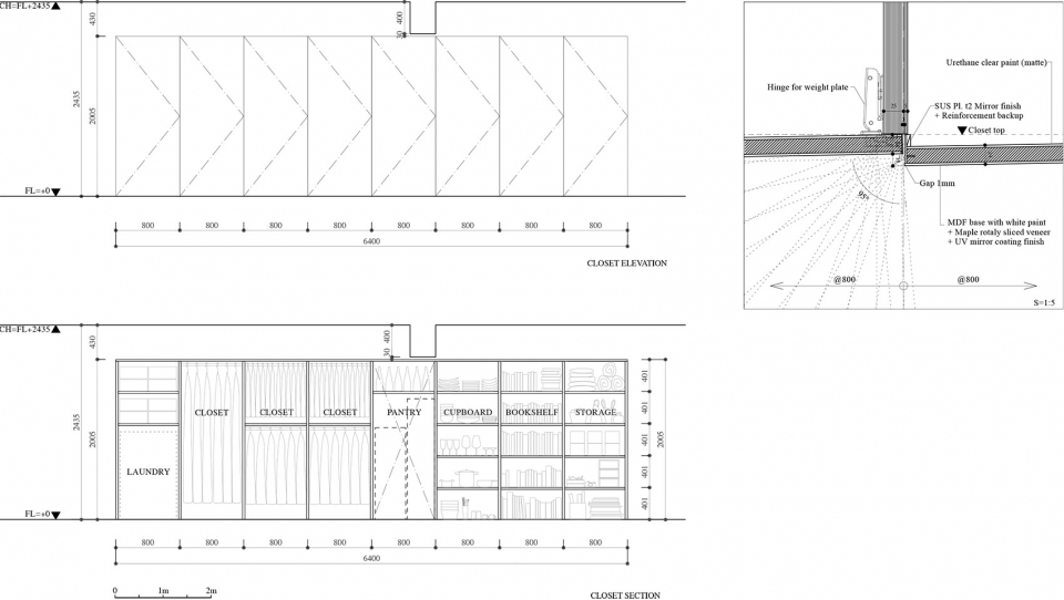 ▼壁橱门稍稍倾斜并产生微妙的间隙,视觉效果随着不同观察角度而改变