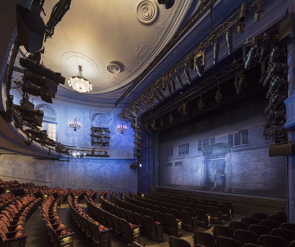 With its unusual Neo-Georgian design, the Hayes Theater is a striking presence in New York’s Theater District. However, the building was showing its age and was need of significant upgrades to the infrastructure in order to provide artists and audience members with the production values and comfort they expect at Second Stage. The renovation adds a modern rigging system in the stage house, allowing scenic artists to be able to build more sophisticated sets, without reducing the elegance of the transitions. The renovation also includes a complete overhaul of the HVAC system on all floors, an upgraded fire alarm system, and the addition of energy saving measures, with a goal of earning LEED Gold certification.