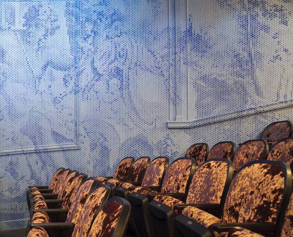 ▼剧院墙壁,以原墙壁挂毯为灵感,用更加数字化和现代化的手法呈现了原挂毯作品