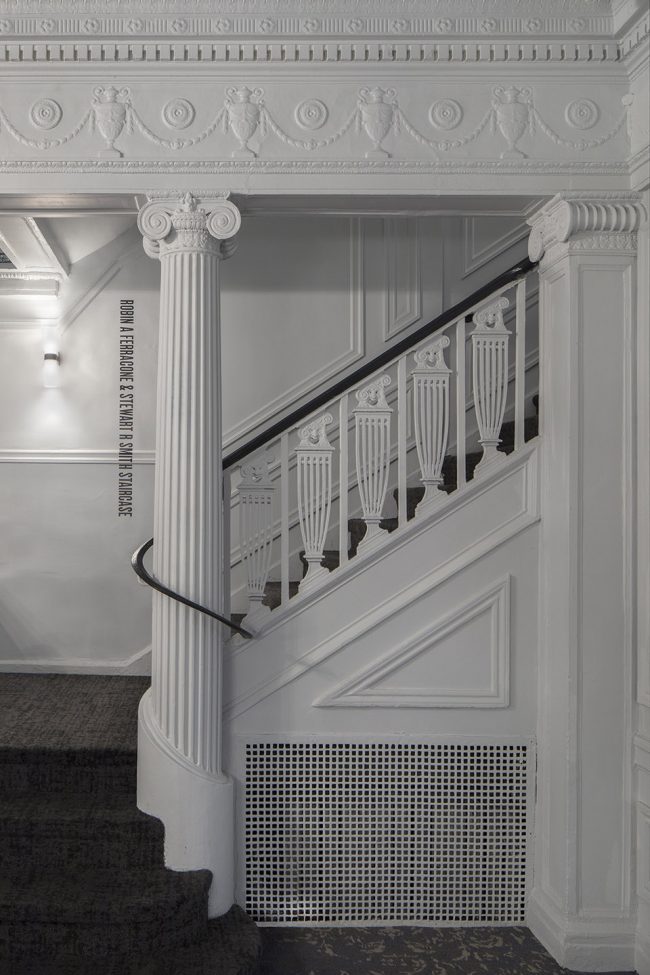 A major part of the refurbishment saw Rockwell Group demolish the remnant of an old townhouse that was used as an areaway for emergency exiting. A portion of this 18’ x 70’ footprint was used to create an extension to the adjacent stage house of Jujamcyn’s St. James Theater. The remaining area of this footprint provides an accessible elevator and exit stairs as well as an accessible bathroom at the Balcony level and 3rd floor, along with the Donor Lounge at the 3rd floor.