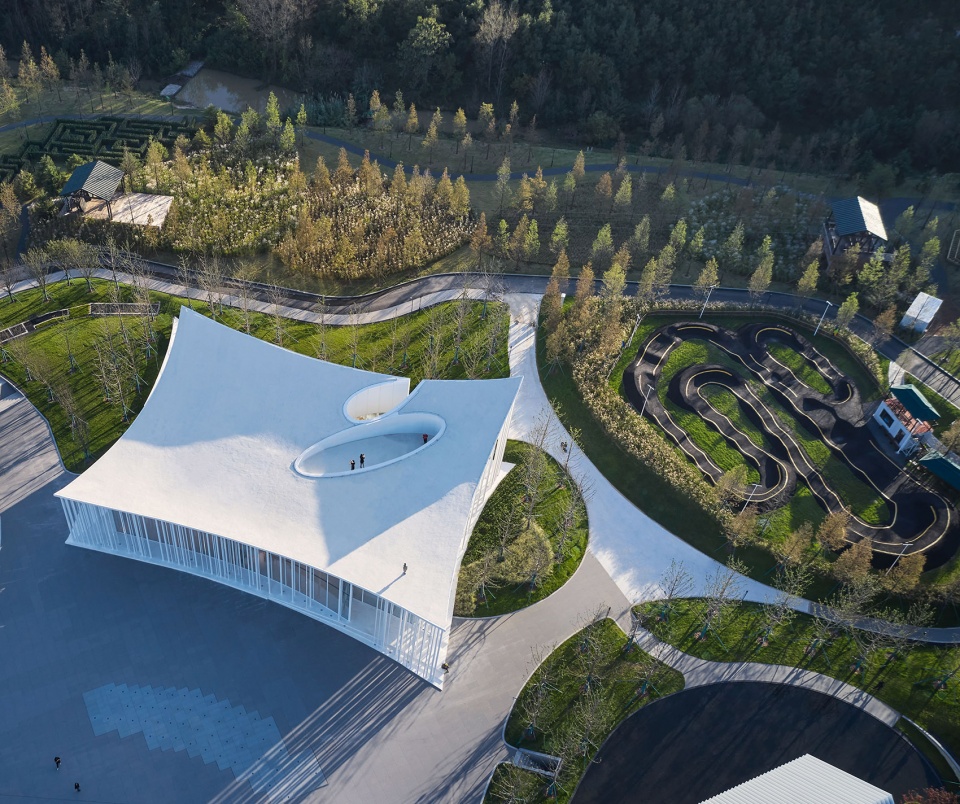 In the early stage of designing process, me and my coworkers and clients have been using the term “Flying Carpet” to refer to Cang Ma Mountain Parent-Child Centre. From its style to function, the Flying Carpet clearly tells us where the focus of this design should be – the white curved rooftop where people can walk on. The language of curved surface has been applied to multiple space within the interior. Setting up an iconic feature for our design is undoubtedly helpful, where media coverage plays quite a part in the project.