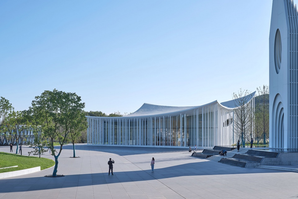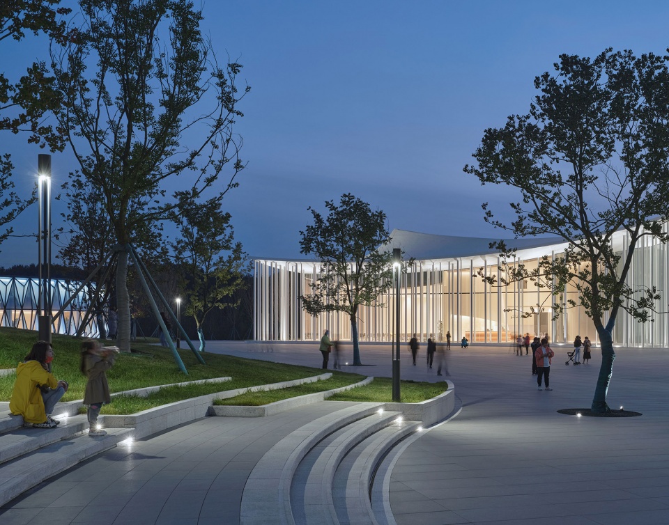 ▼建筑作为广场虚透的背景,檐下是行走和活动空间 ,The building serves as a backdrop for the square’s permeability, with walking and activity spaces under the eaves