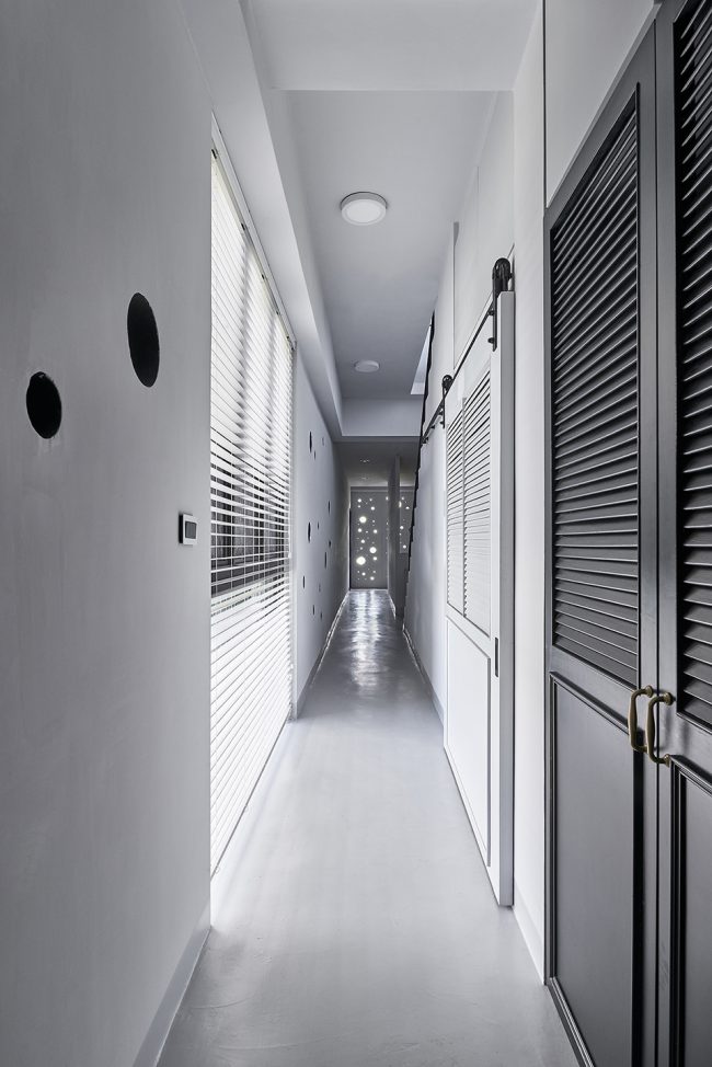 Climbing up the narrow staircase directly to the 3rd floor, long and gloomy, but a flickering radiance in the far end. Imitating the experience of running through the longest tunnel in the country from Taipei, expecting Yilan’s open plain to come and guide, just like the starry lighting placed above.