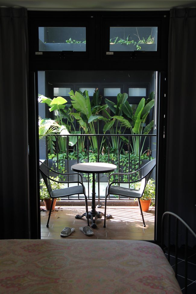 客房墙壁上大小不一的窗洞能够在过滤噪声的同时为房间引入宁静的街景。阳台保持了开放,但并未暴露于室外。不论庭院还是山丘,不论晴天还是雨天,每位客人都能在自己的房间内惬意地享受专属的风景。