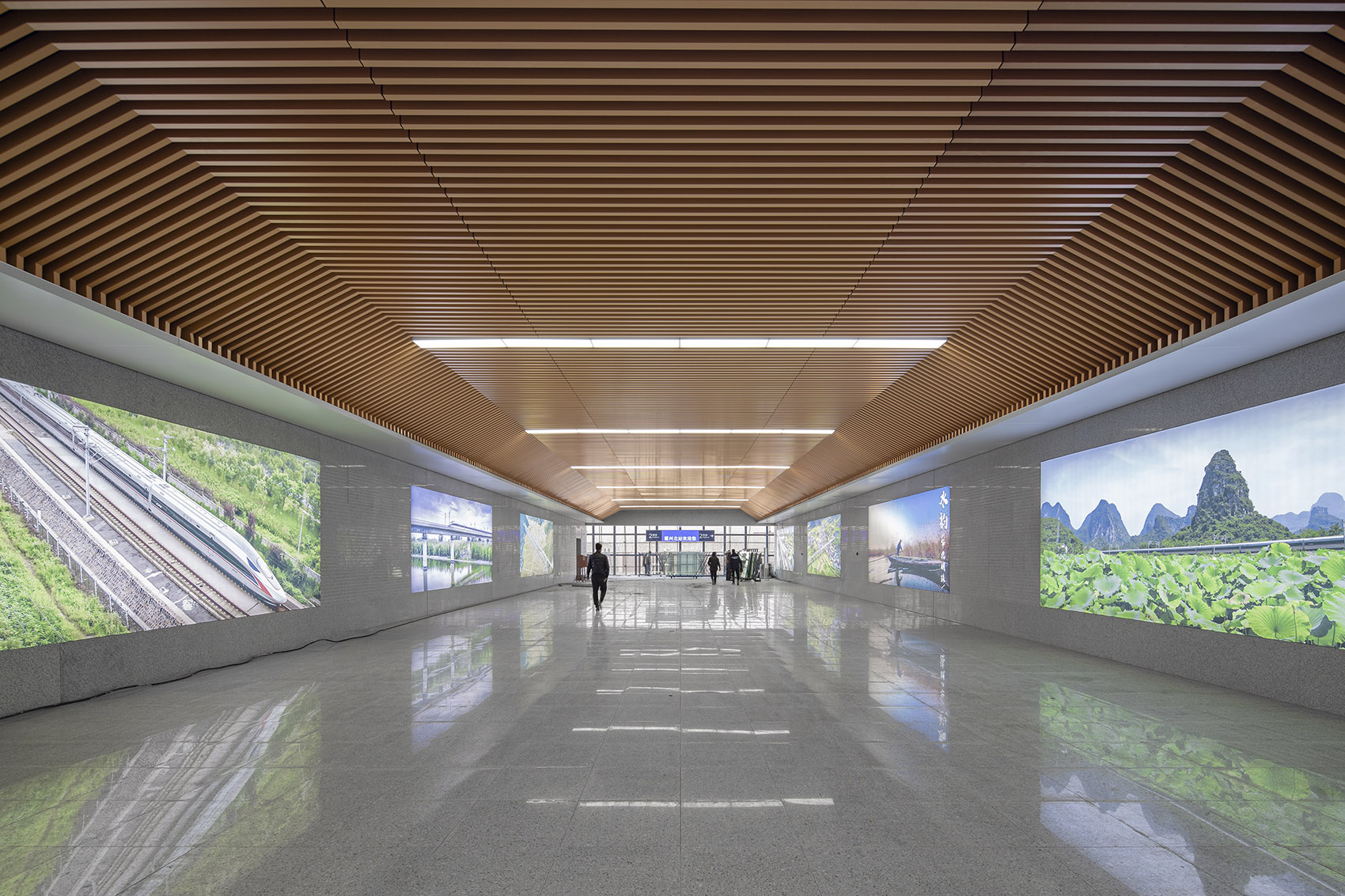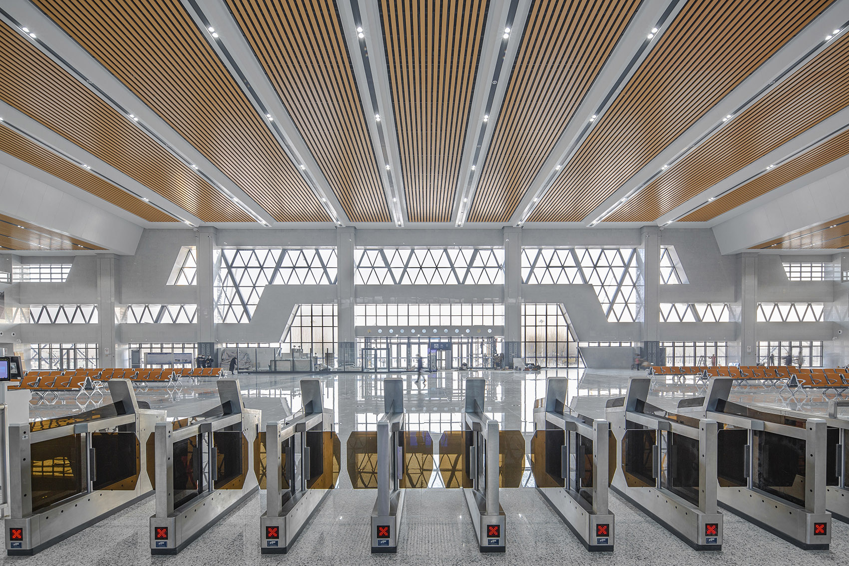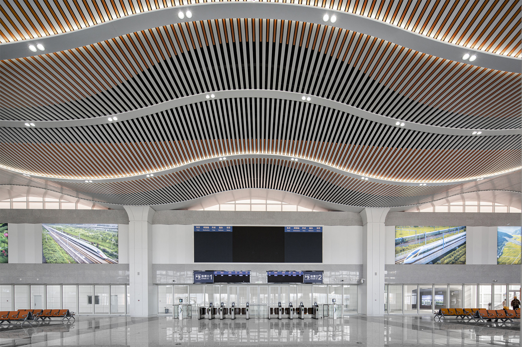For tourists, the station is the first and final impression of the city. The design of the waiting hall fully reflects the integrity and regionality of the building. The architectural style is based on traditional Chinese cultural elements, and the overall tone uses a warmer wood color.