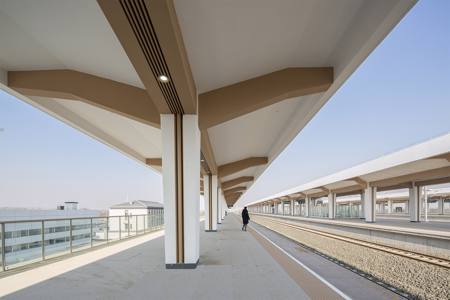 京雄城际铁路位于北京市和河北省境内,连接了北京到雄安新区,沿途设北京西站、北京大兴站、大兴机场站、固安东站、霸州北站、雄安站6座车站。出京后沿途共有三站,其中两站——固安东站、霸州北站,由CCDI悉地国际全专业倾力打造。