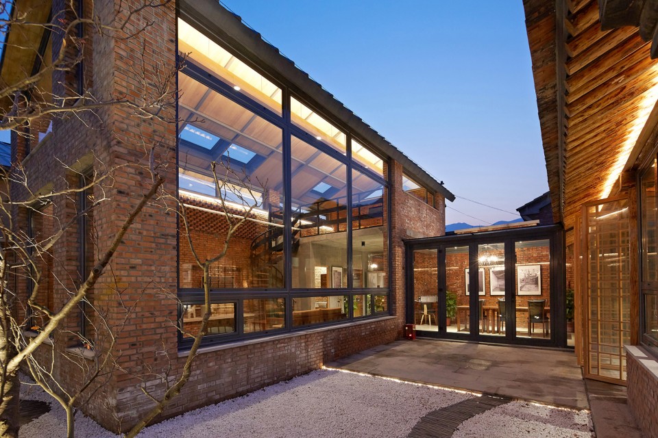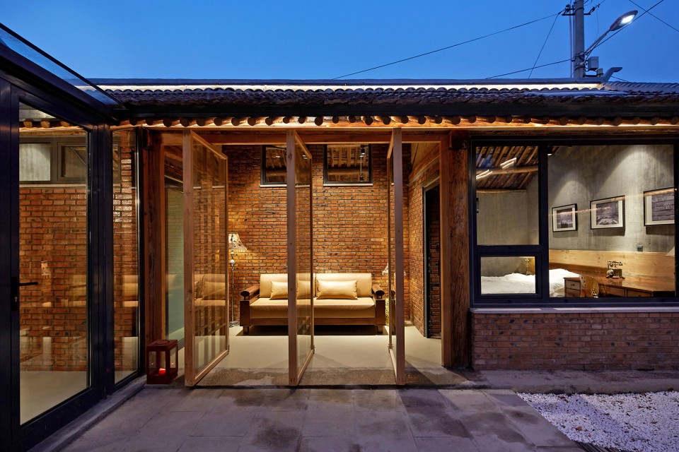 Since the courtyard is not an intact quadrangle dwelling, designer mainly focused on creating the atmosphere of the yard, customers cannot see any other architecture out of their sight and this is the logical throughout the whole design process. Even though a large area of window were built up, customers’ privacy could absolutely be ensured.