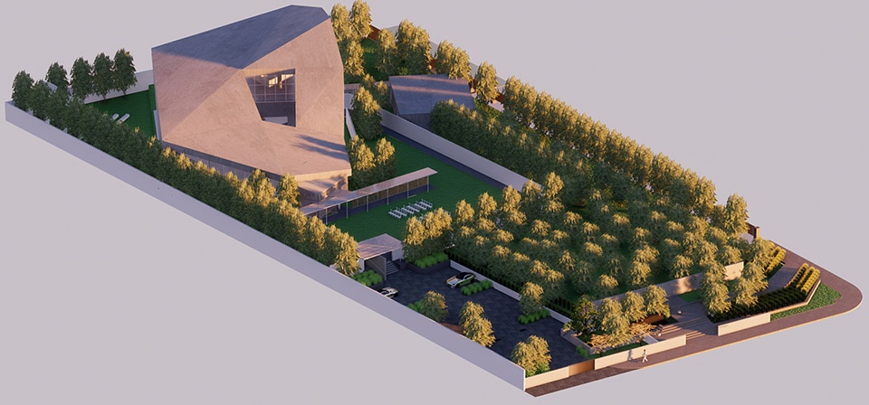 The main building is an irregular geometry with a nearly trapezoidal plane center and an inward patio that directs sunlight and air into the massive building, illuminating every corner. The building is hidden in the shade of green, with a relatively independent closed ceremony lawn in the backyard, and the original condition of the front yard is not bad. There are stone paths, tall and short flowers, all the same. There is a landscape like a park for leisurely walking, but there is no atmosphere matching the wedding art space. So at the beginning of the landscape design, we focused on the entrance, a courtyard full of ceremony and little surprises will become the romantic and poetic foreground of the main building.