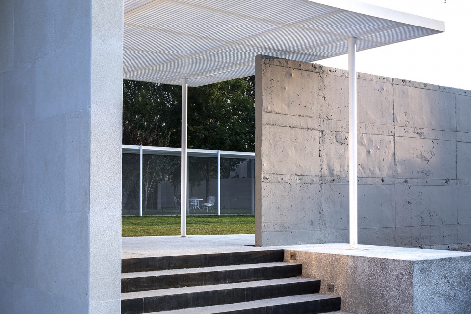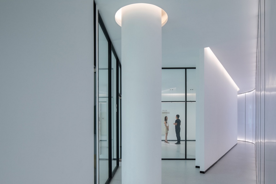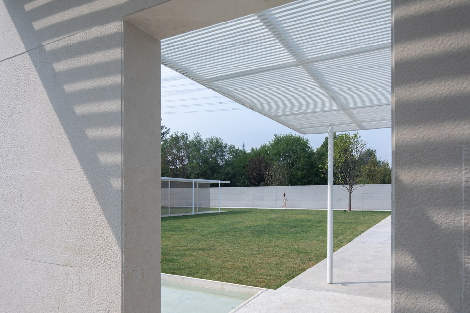 ▼混凝土墙体与白色连廊,对比强烈却又和谐统一,solid wall and white corridor contrast with each other, yet harmonious and unified