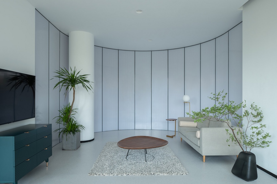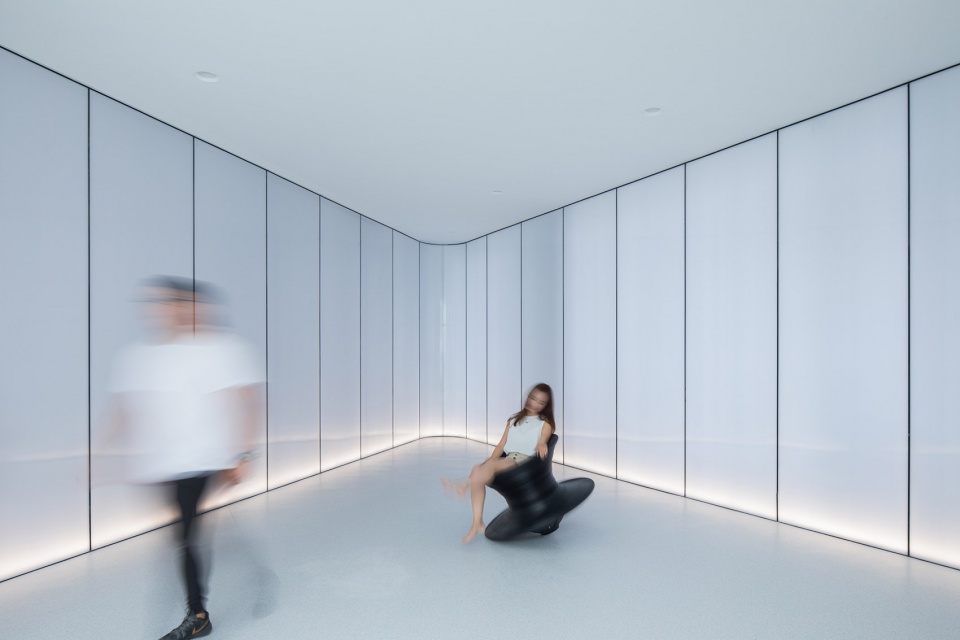 “To create a different dressing room, to leave the best memories here,” was the tone we set from the beginning. Therefore, on the premise of focusing on the function itself, we focus on the design of “experience”. In the space connected with the banquet hall, we use two semi-transparent semi-circular walls to form a group of flexible space with beautiful shape. Inside one semi-circular wall is a large open and connected space for girlfriends to chat and drink tea. Another semicircle is the area that makes up, change clothes, still have the lavatory of illicit close among, space of circular arc space becomes horseshoe shape, display area of clothing is compressed to moderate scale, and not too straightforward. In the pure white ground color of dimensional whole, only for make up room attune trifling red, green, aureate, for “green tree red wall has beauty” poetic foam went up weak color. We removed part of the outer wall, will be changed to be born glass window, the outdoor gardens and green plant to make up, for dressing rooms cutting out a private courtyard, sunlight through the shadows fell on the interior, besides, before the start of the ceremony, the bride and groom, and friends can enjoy the most comfortable and pleasant time here.