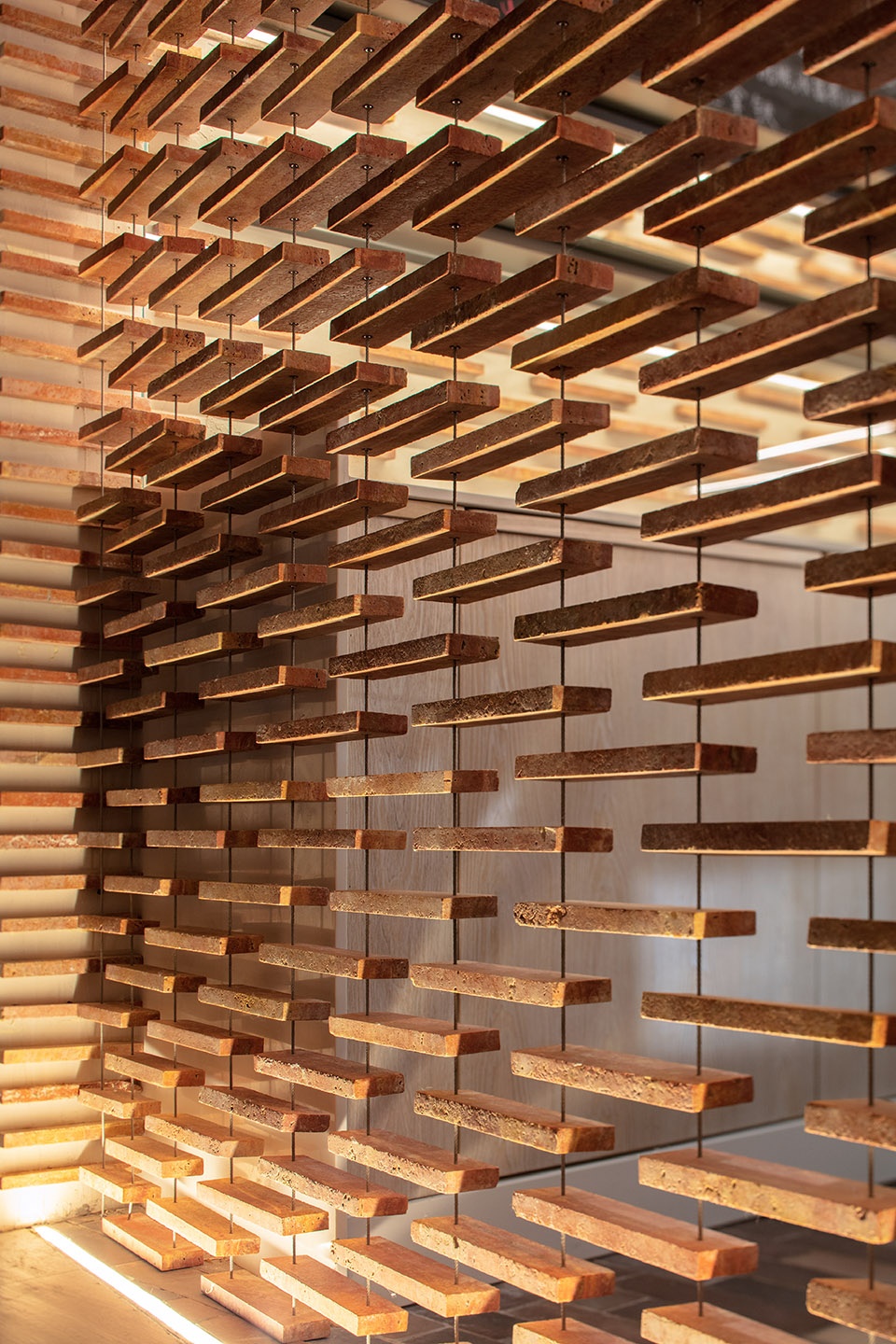材料:红洞石、手工砖、橡木板、有机玻璃、涂料。