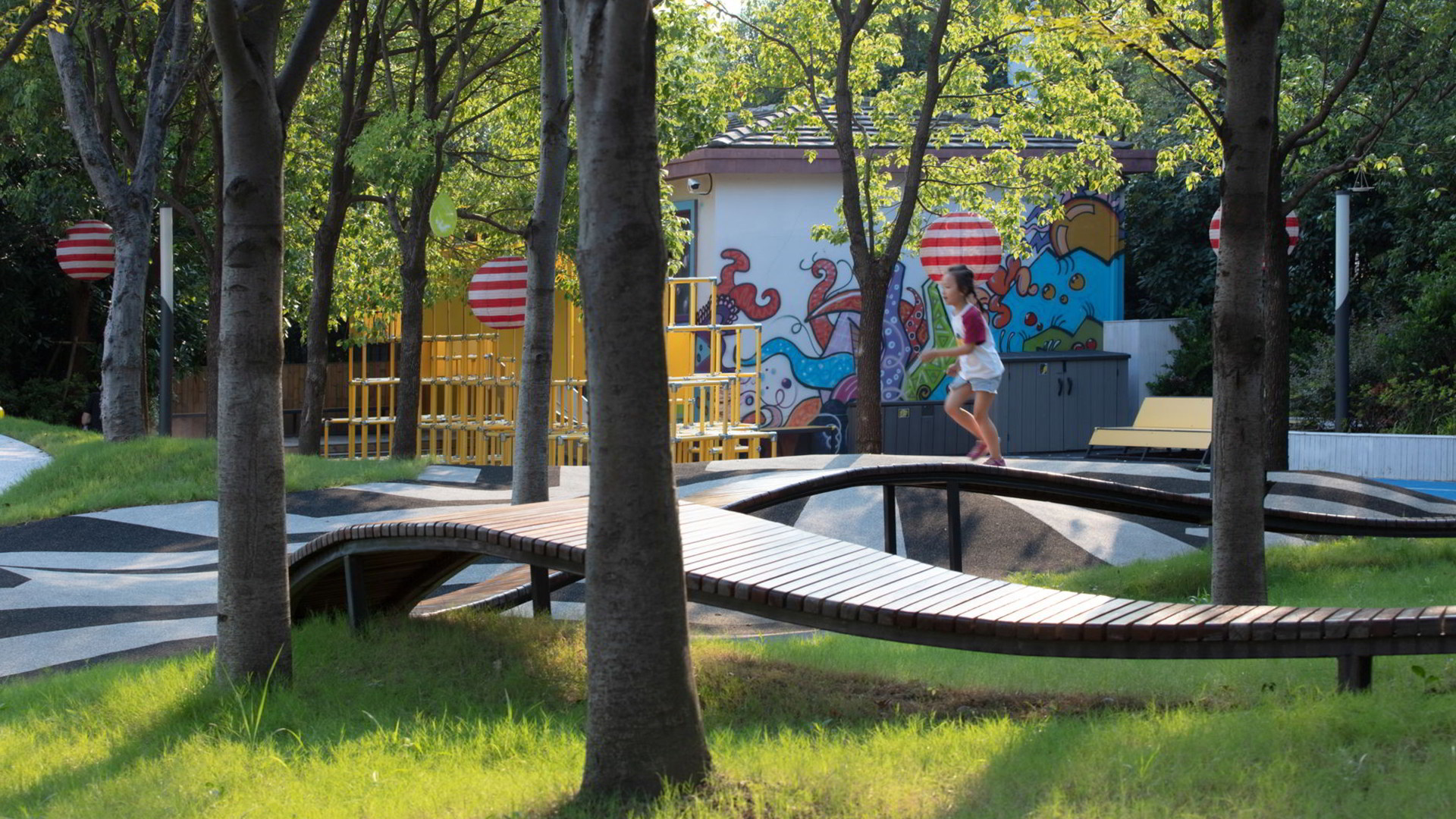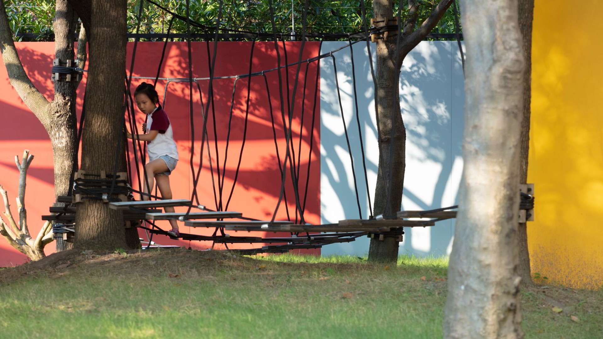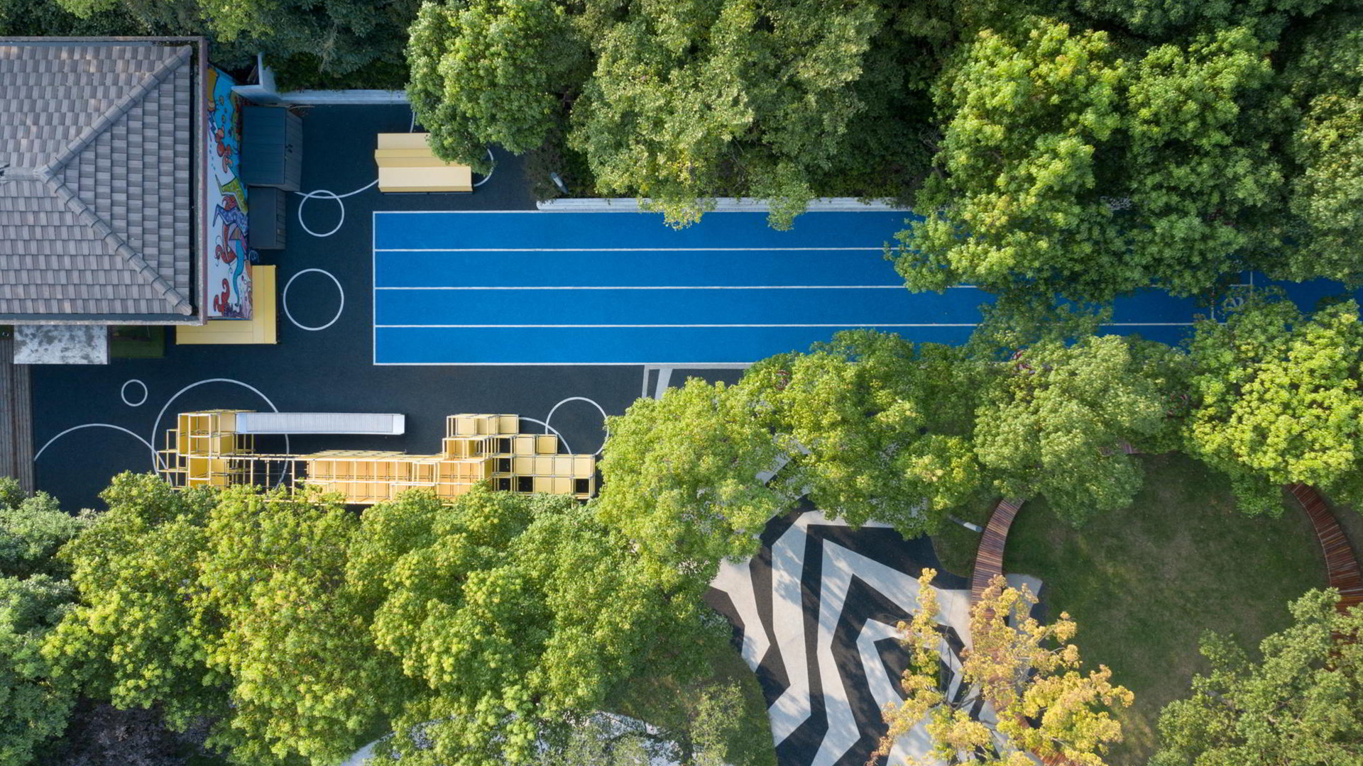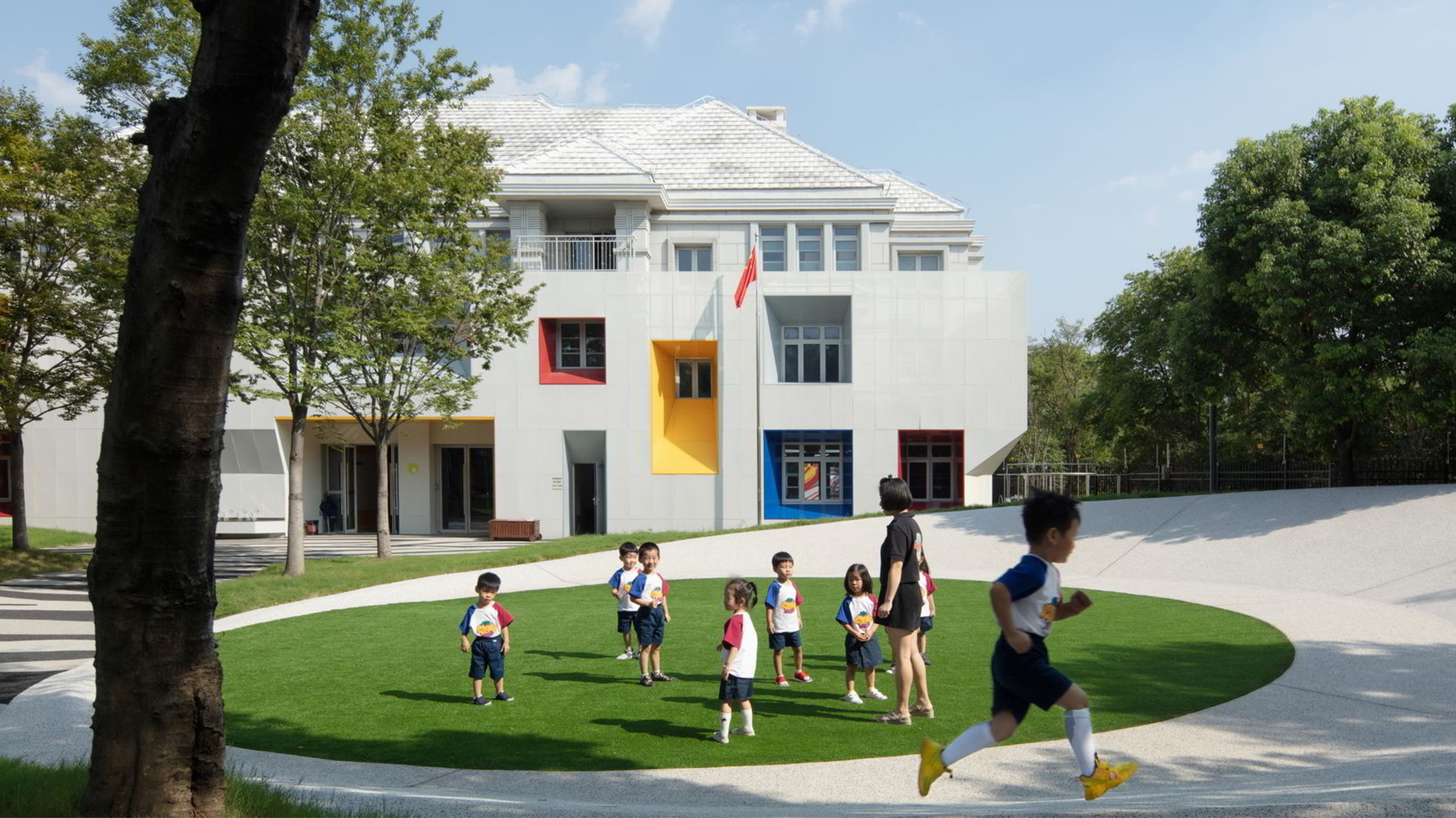 Magic International Kindergarten, located in Baoshan District, Shanghai, is a renovation project used to be a sales center in a real estate apartment in the past five years. In response to the kindergarten's educational philosophy of "Unique Kids, Unique Education", the site was transformed by adding custom-sized interactive installations, preserving the existing trees, and releasing the potential open space. Therefore, an imaginative outdoor space has been created to support the early year development of children's cognitive, emotional, social, motor and language skills under an educational environment.