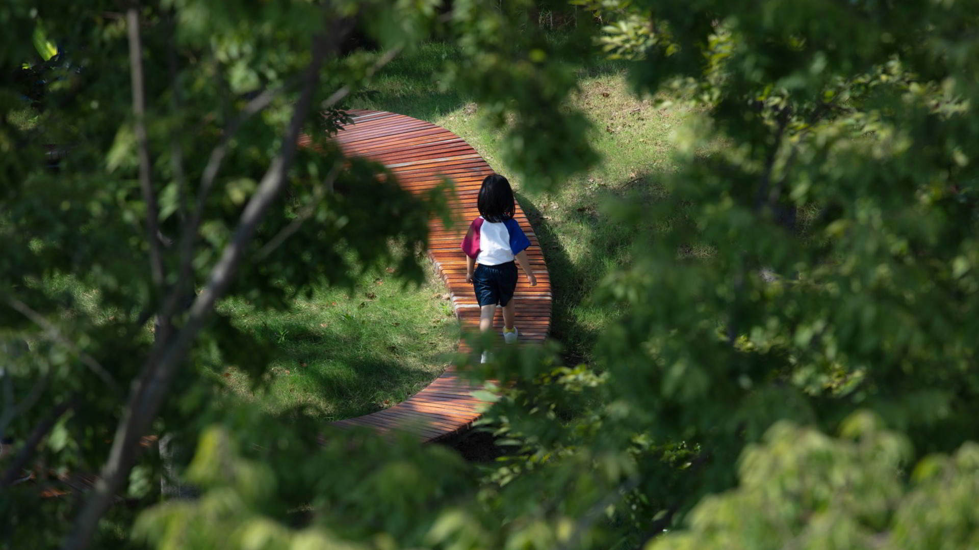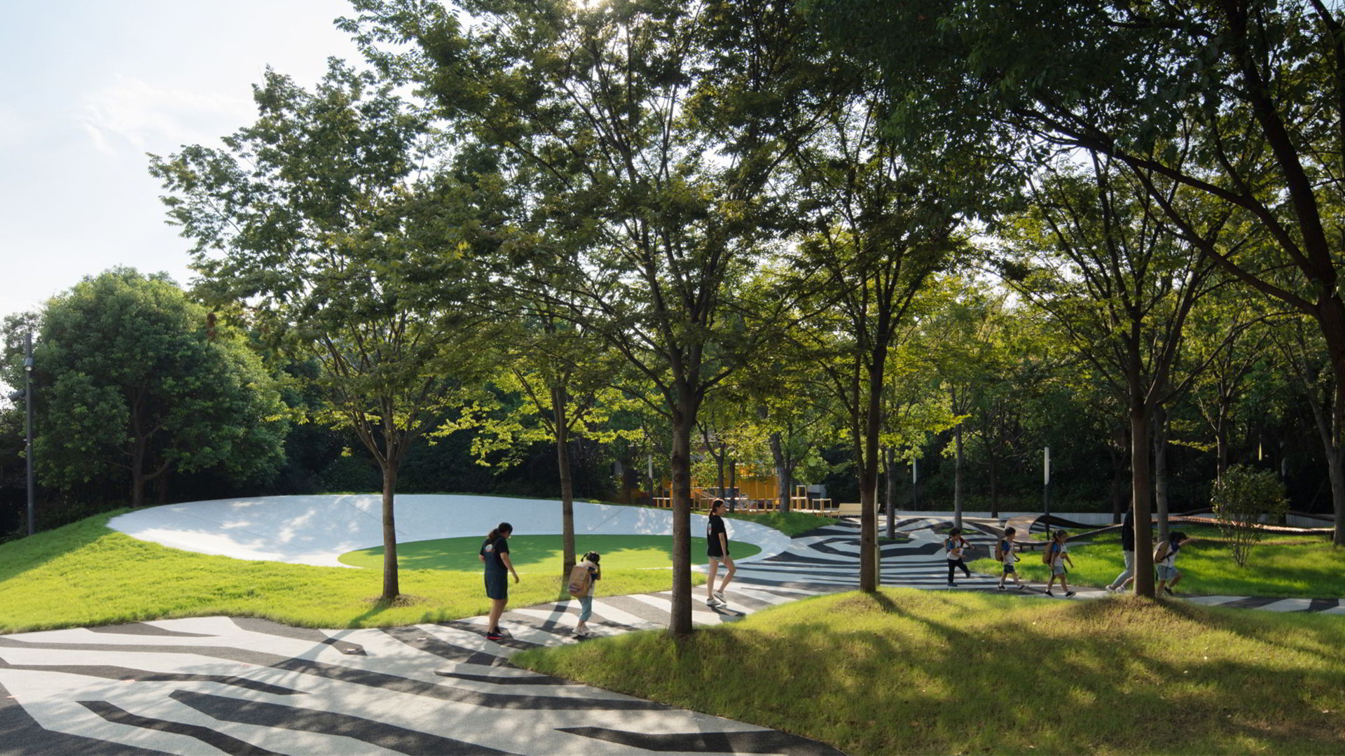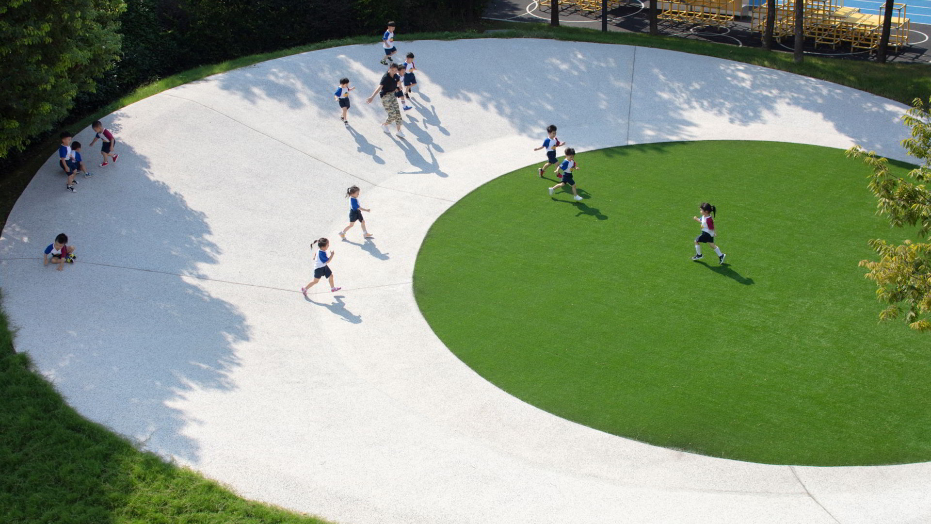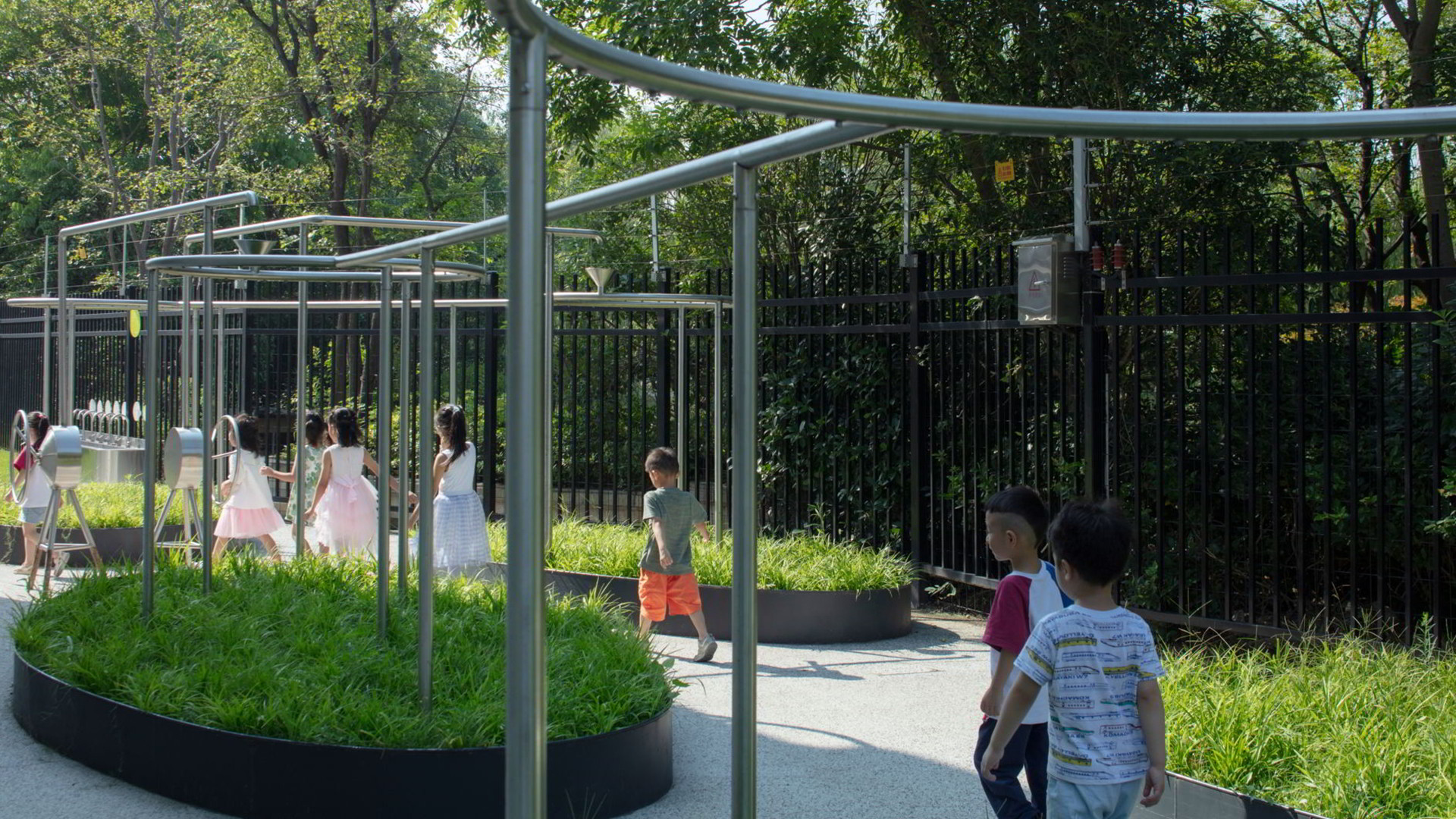 Magic International Kindergarten, located in Baoshan District, Shanghai, is a renovation project used to be a sales center in a real estate apartment in the past five years. In response to the kindergarten's educational philosophy of "Unique Kids, Unique Education", the site was transformed by adding custom-sized interactive installations, preserving the existing trees, and releasing the potential open space. Therefore, an imaginative outdoor space has been created to support the early year development of children's cognitive, emotional, social, motor and language skills under an educational environment.