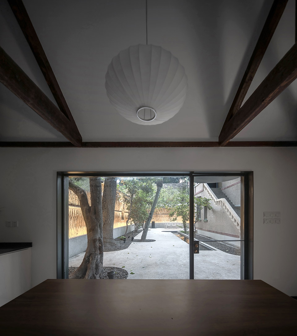 When designer came to the courtyard, there were green trees, camphor trees, persimmon trees, loquat trees and nameless trees. The tree trunks and walls were wrapped with wild vines, forming a rich natural landscape.