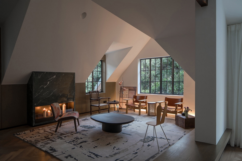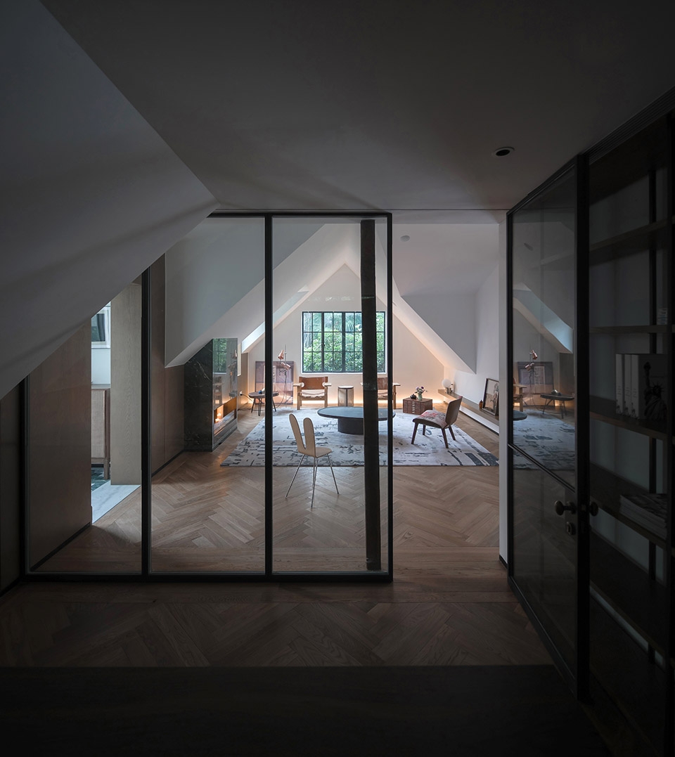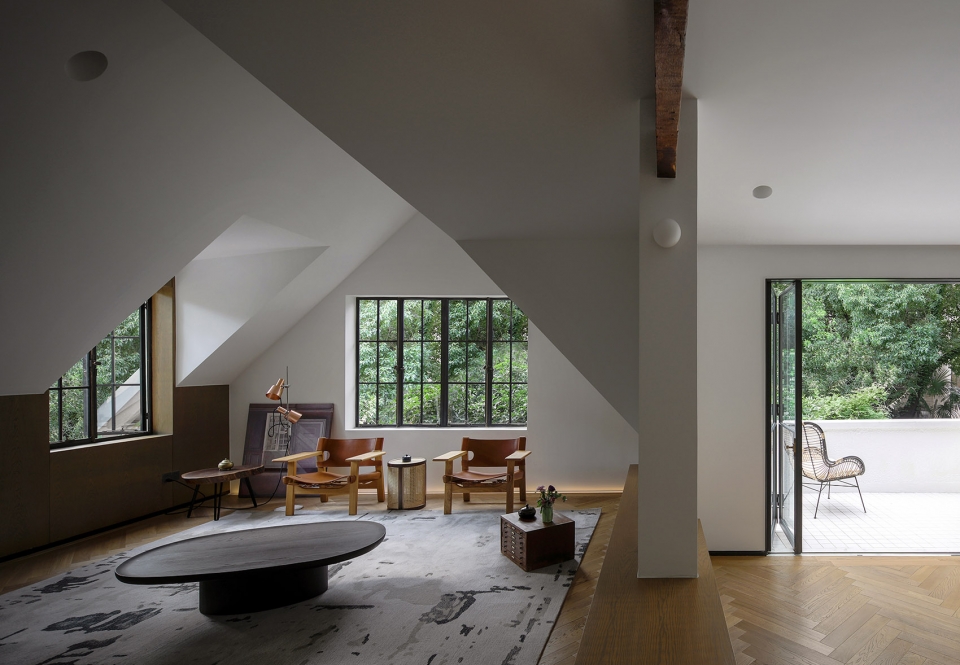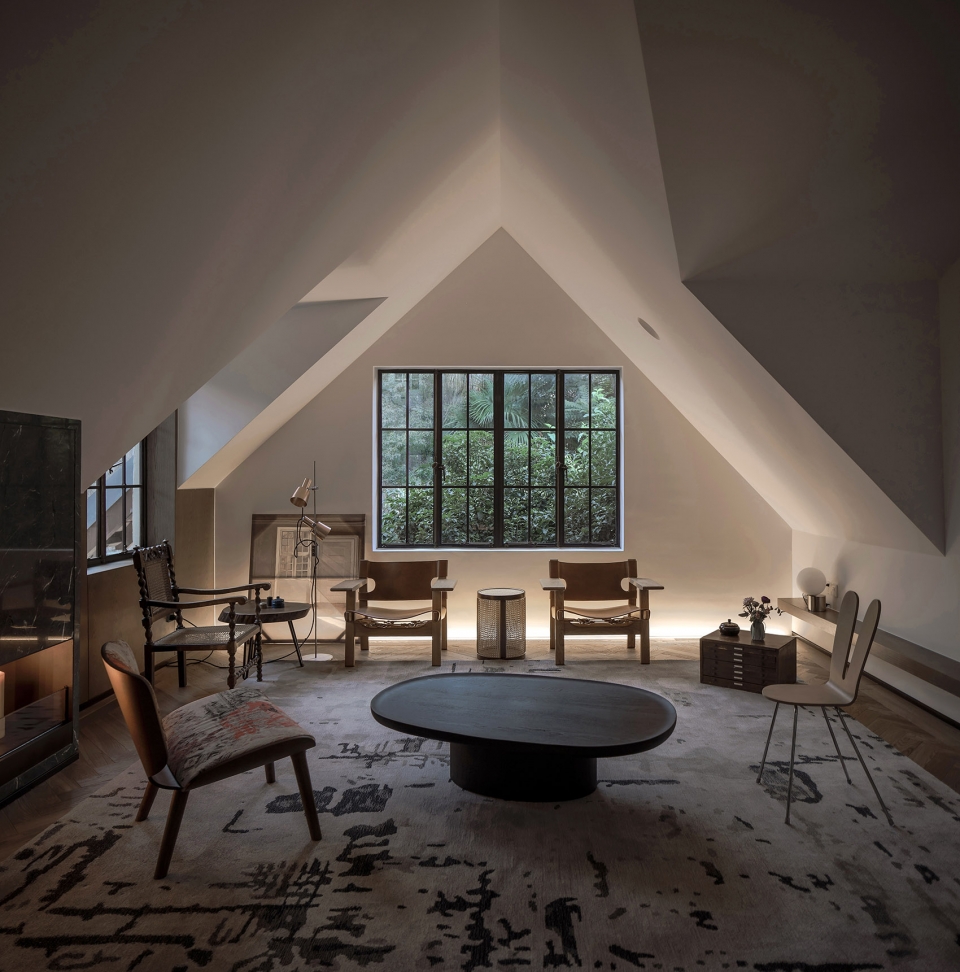 The multi-slope roof has a complex and rich ridge line, and the tiger window makes the indoor ceiling structure quite special. Large area of low flat roof and the height of the facade roof is very big difference, implying that the interior is hidden with a huge high-height space. After removing the existing suspended roof gypsum board, the original slope roof temperament and height can be seen.