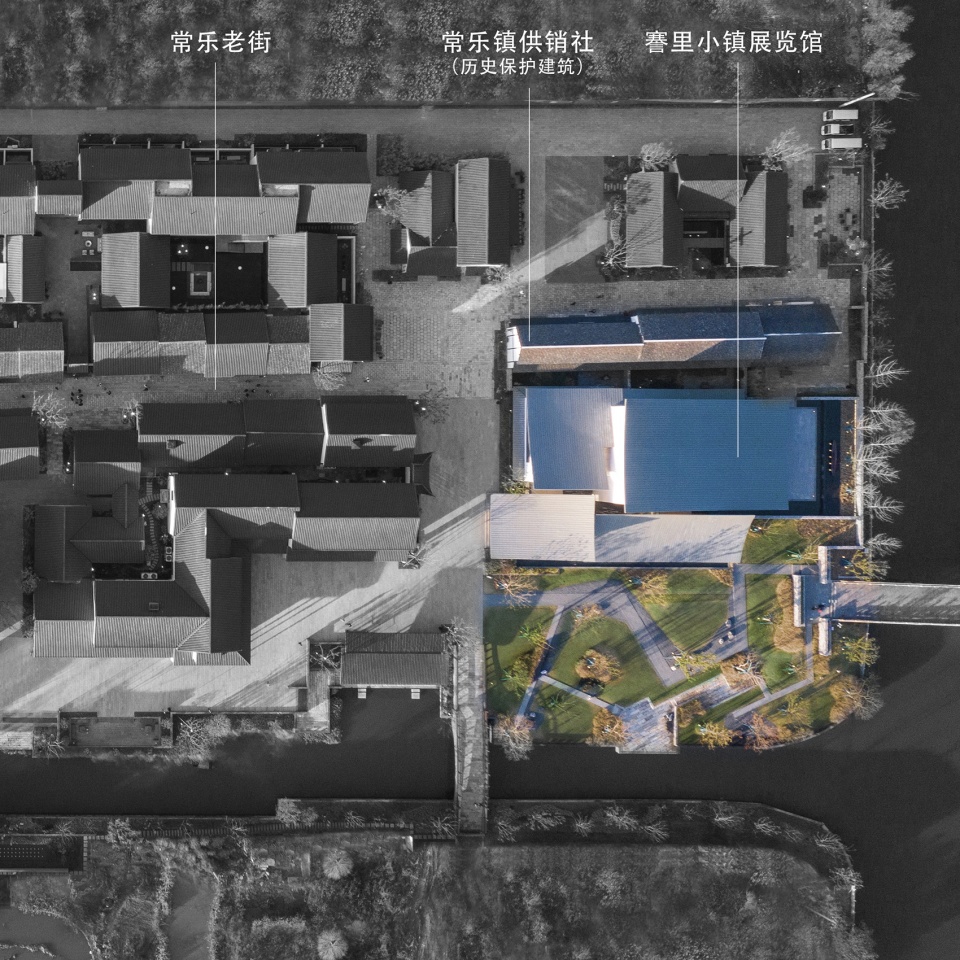 南通市海门区的常乐镇,是清末民初著名的实业家、政治家、教育家张謇(1853-1926)的故里。因常乐老街改造的文旅项目中南·张謇故里小镇而得名“謇里小镇”。goa大象设计承担了整座小镇的规划和设计,其中謇里小镇展览馆是项目核心区常乐老街的门户所在。常乐老街成于乾隆年间,青石板路东西延伸300多米,小镇展览馆场地位于老街东端起始点,北侧毗邻的常乐镇供销社是一座有着百年历史的木构保护建筑。新展馆如何与小体量的历史保护建筑和谐共生?文旅功能如何融合当地文脉特征,在唤起文化归属感的同时也让謇公“更改旧俗,树立新风”的精神在今日延续?设计由此展开。