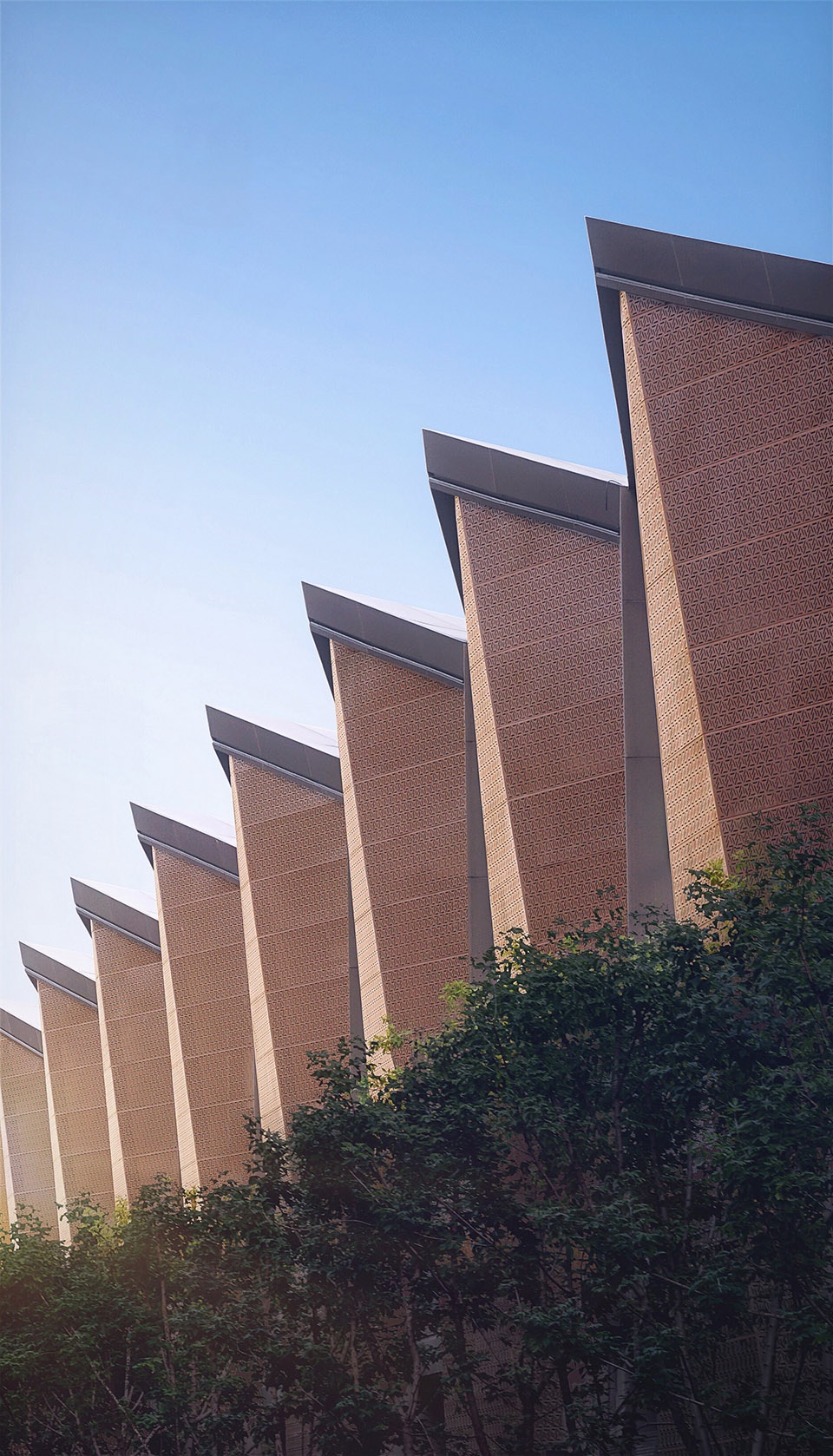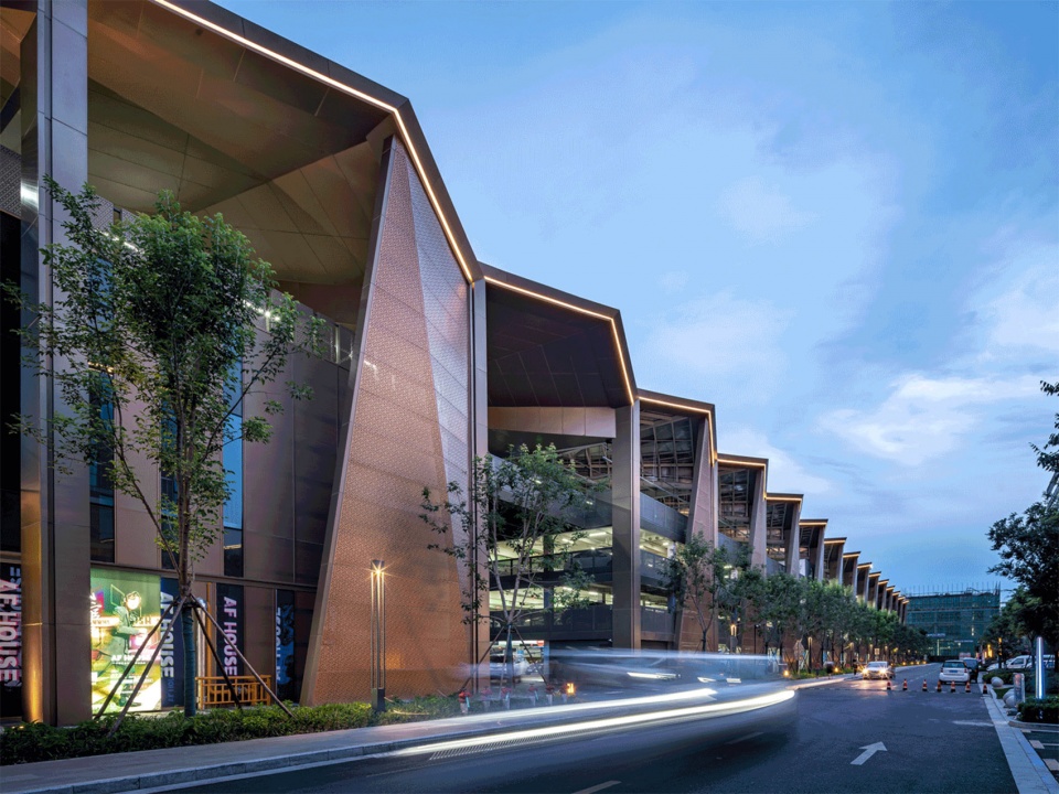 At present, the phenomenon of “suburbanization” of industrial parks can be explained as homogeneous buildings, unbalanced scales, cold space atmosphere and so on. In the Xizi Wisdom Industrial Park project, architects tried to achieve a more organic state in terms of public space pattern, architectural form and landscape level as an exploration of the “urbanity” of industrial space. There are buildings of different shapes between the gardens. The high-rises are located along the street and are R&D centers and intelligent manufacturing centers. The five-story independent R&D headquarters and the lower creative offices are located on the inside, forming high and low levels in space.The architectural form is based on the principle of “seeing diversity in unity”, and each group is different. The buildings on both sides of the L-shaped public axis adopt warm brown tones to enhance the public space atmosphere. Among them, the art center uses the same reddish-brown perforated aluminum plate as the facade of the factory, and the wrapped diamond-like shape becomes a visual focus.