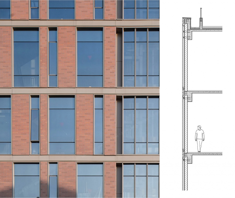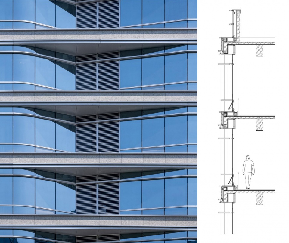 为化解产业建筑的“冰冷感”,建筑没有采用统一的标准化的立面,而是以不同的立面做法体现建筑的个性。从挺拔干练的竖向线条到充满张力的横向线条,为园区的场所提供定位与标识。立面构件吸取其他类型建筑的营造经验。注重以细腻的尺度建立与人感知间的关联。在大的划分之下,以细金属件建立第二、第三层次。雨棚等元素成为建筑外观中的表现元素。