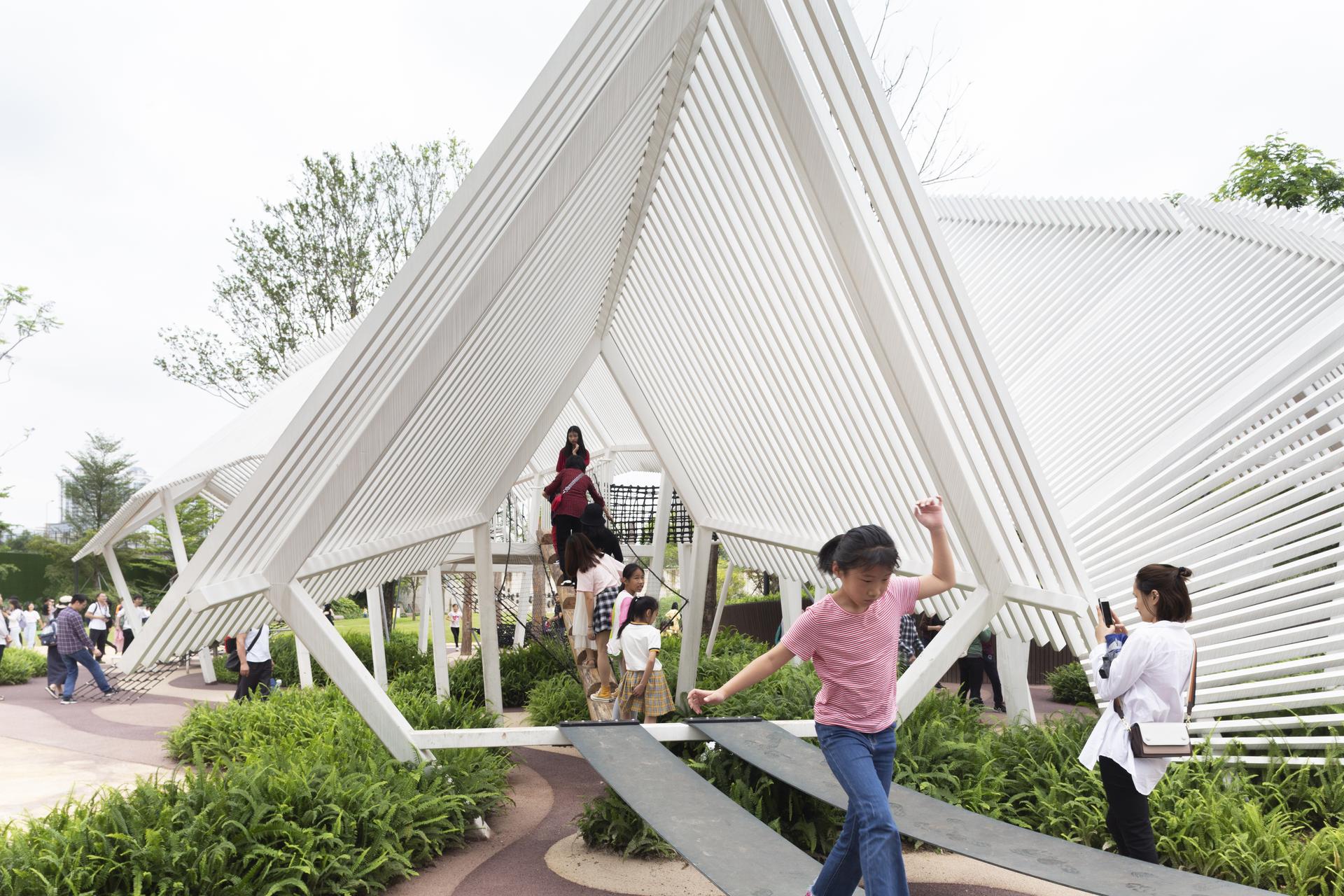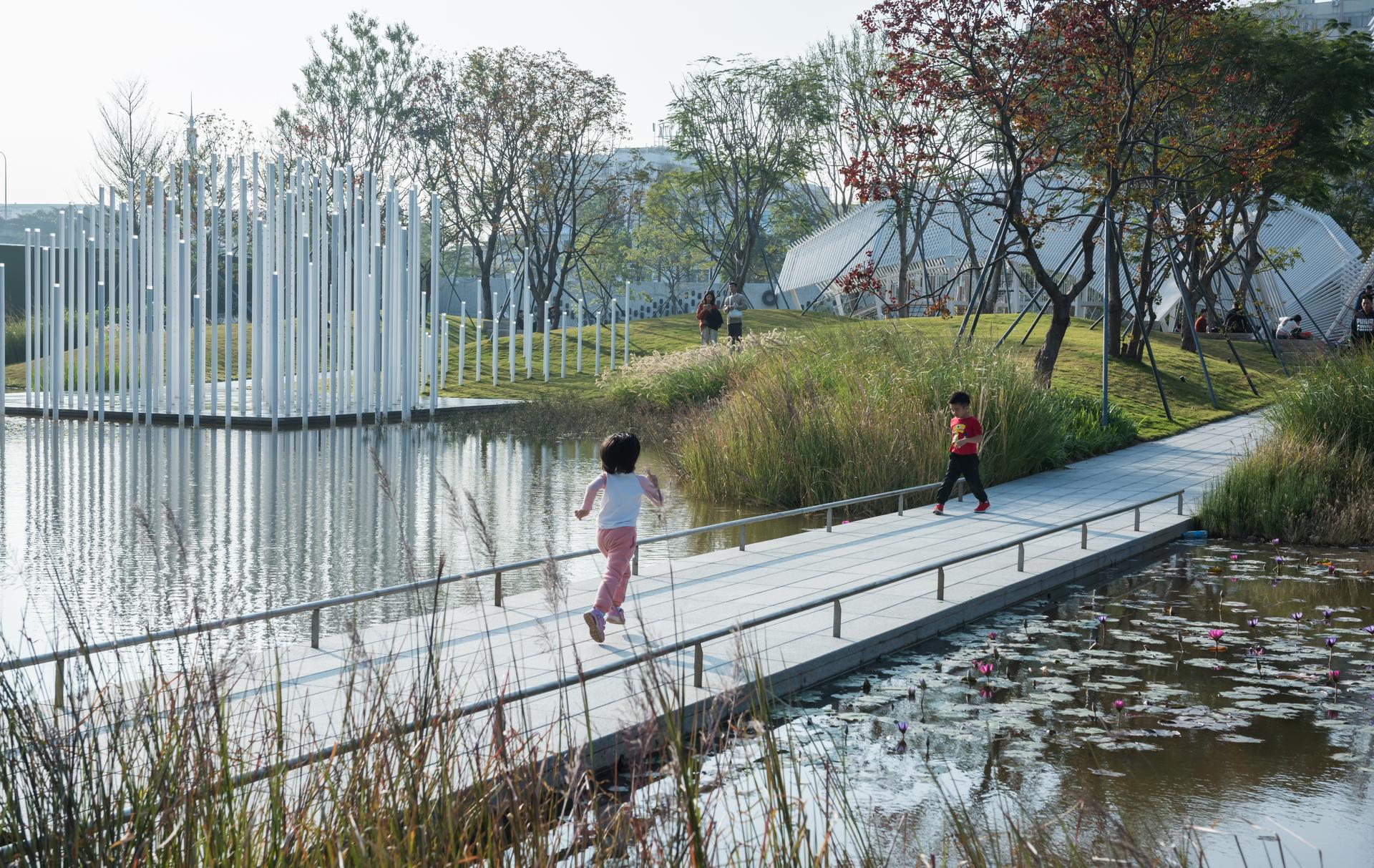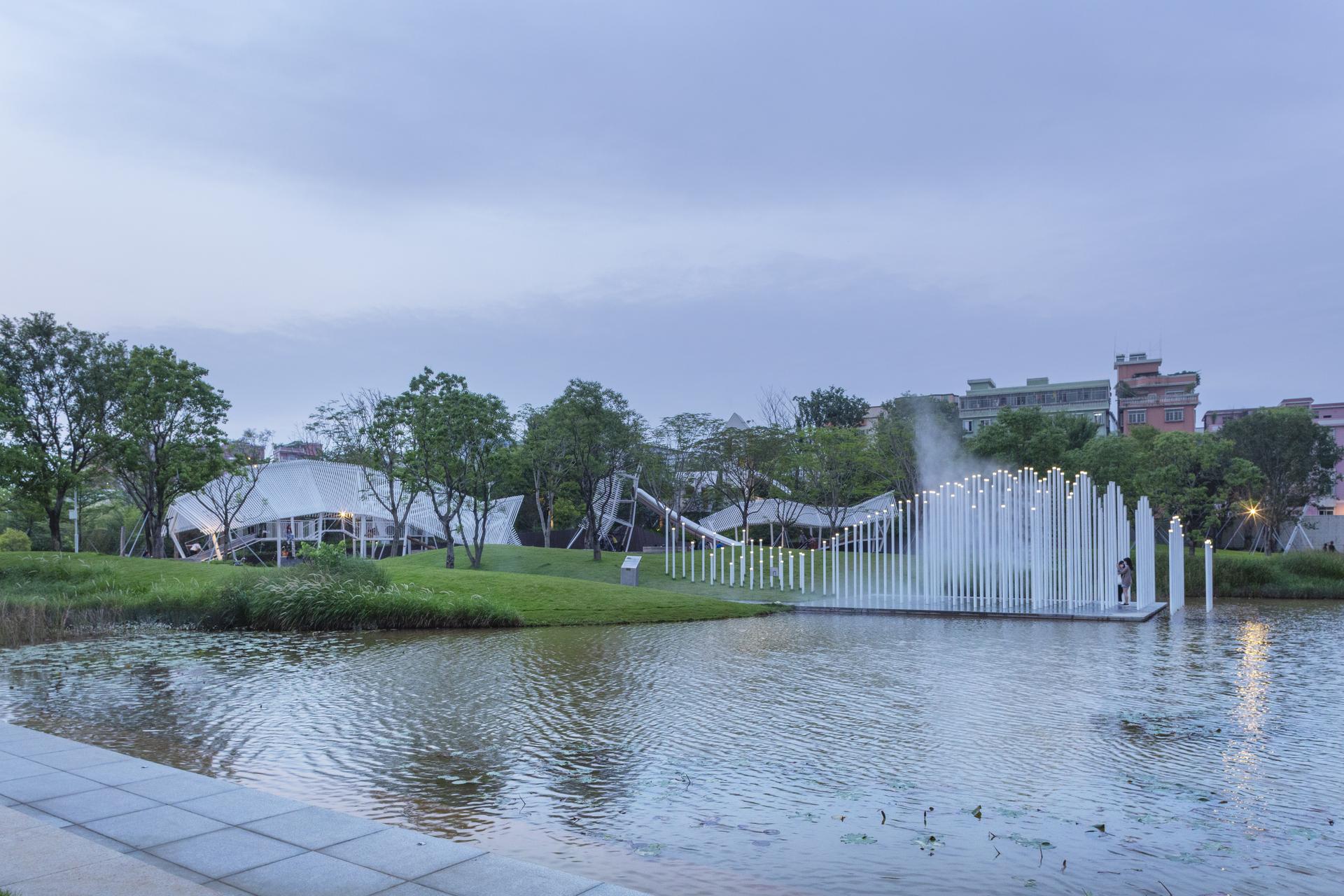 To match up with the "forest" concept of the architecture, we position the landscape as "water"; the forest is a paradise for birds, and water is a home for fish. Stormwater Management and water ecosystem in the site are one of the basic functions of each of our designs; large-scale creation of biodiversity is relatively easy in Guangzhou area, abundant underwood can selectively form its own microclimate quickly; Combination of environmental education and the needs of various people’s daily use are not only the correspondence of the ecosystem in human behavior, but also a potential rule of creating atmosphere.