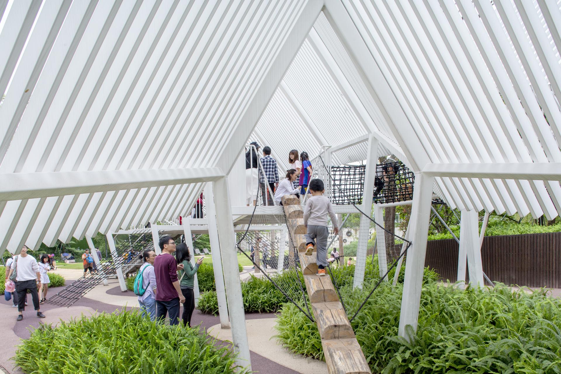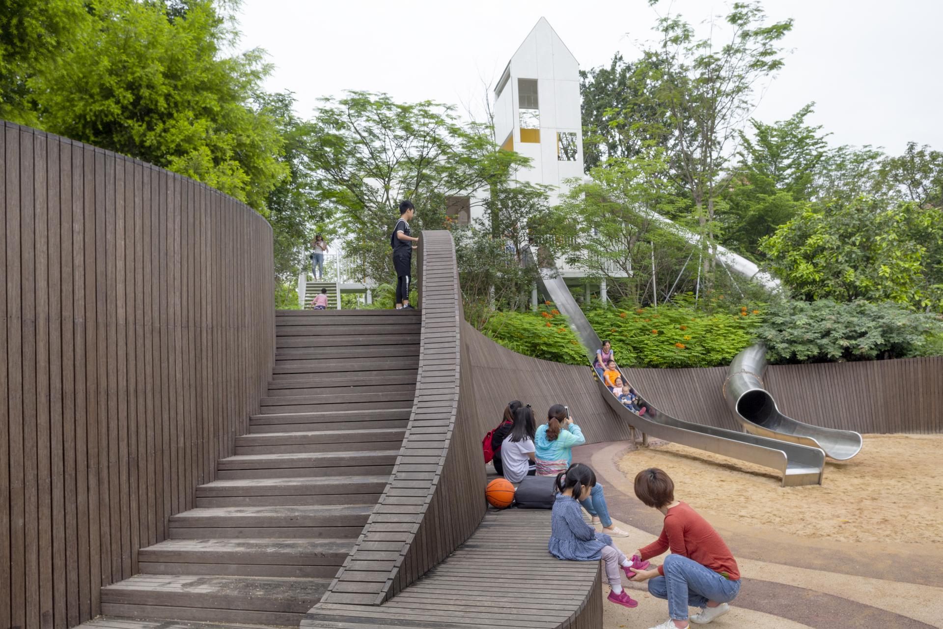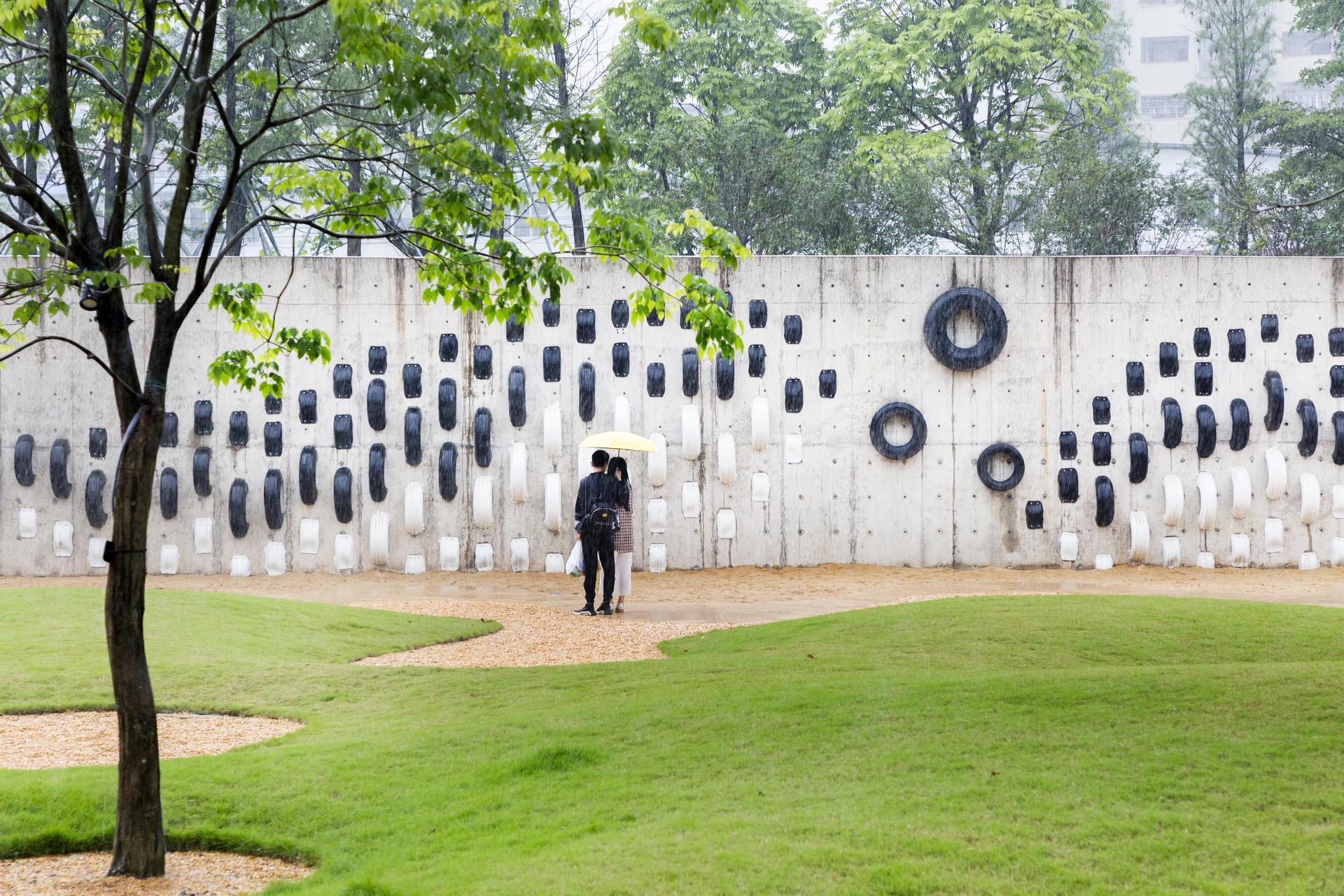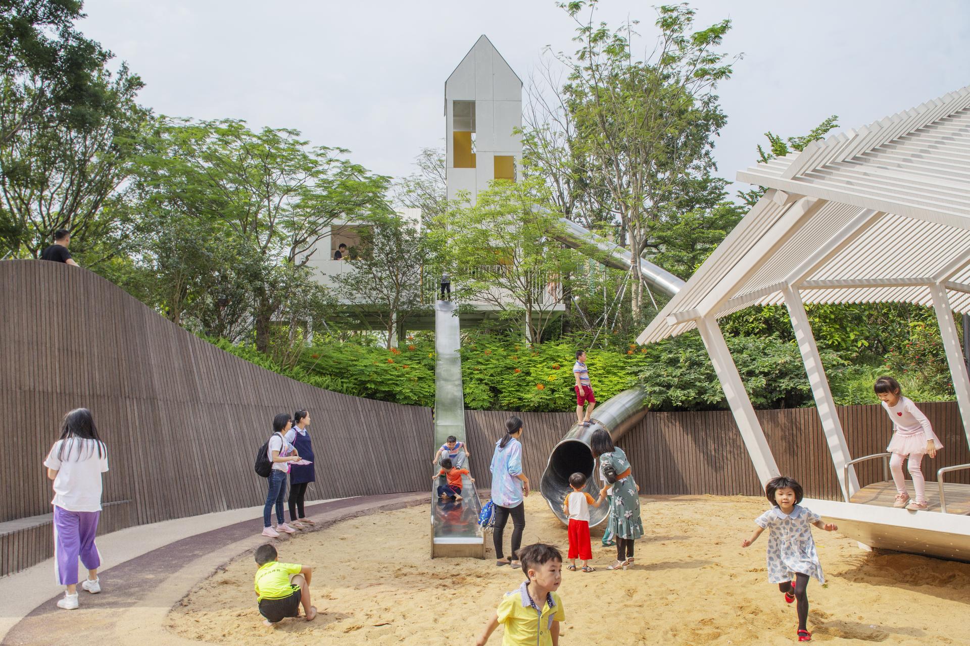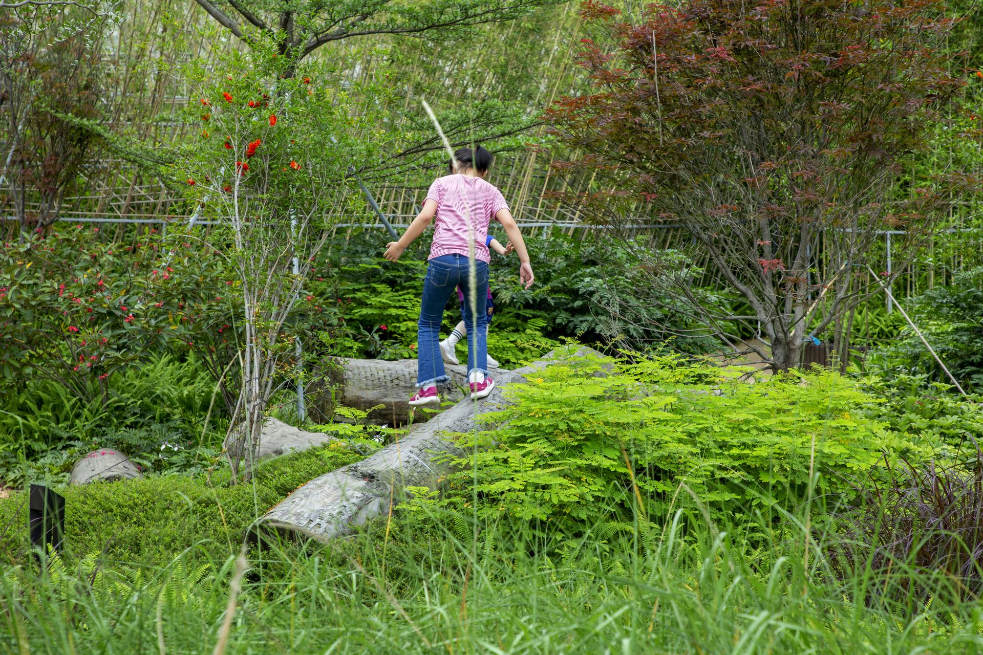 配合建筑的“林”,我们把景观定位到“水”;林是鸟的天堂,水是鱼的家园。场地内雨洪管理及水生态系统是我们每个设计的基本功能之一;生态环境多样性营造在广州地区相对容易,丰富的下木植物可选择性使场地很快形成自己的微气候;环境教育结合各类人群日常使用需求,既是生态系统在人的行为上的对应,也是一条潜在的氛围营造规则。