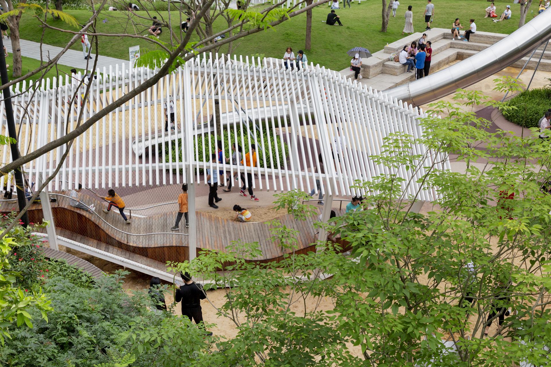 The project is located near BaiYun Mountain in Guangzhou.The architect Sou Fujimoto hopes to "borrow" the intention of Baiyun Mountain to the community to create a new living environment and transform the industrial landscape into a "future forest" that integrates human and nature. When we arrived at the site firstly, what we saw was a wilderness of weeds. The standard which is "three connections and one ground" for land makes all the history of the original site was erased. The site used to be a fish farm a few years ago: the fish roe are incubated and cultivated here, and then they are sold to various fish ponds nearby, finally completing their very short life.