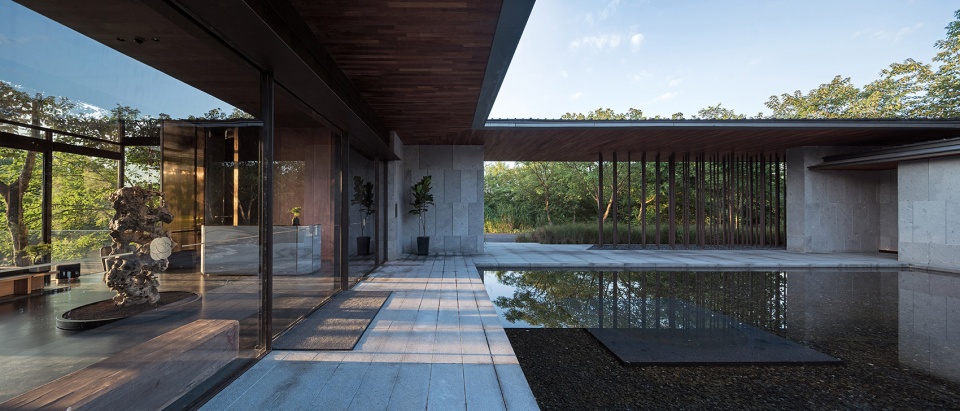 MUH SHOOU XIXI lies on the end of Longshezui entrance at the southwest corner of XIXI Wetland. The site of the project is located at the north of gently rolling hills and the south of flatland with plentiful lakes. It boasts typical wetland ecology with water path, land route as well as native vegetation surrounding. The architect attempts to present the natural beauty of XIXI Wetland – “coldness, quietness, uniqueness, wildness and seclusion” – to visitors through the design and evoke the resonance between human and the primitive nature through the architecture.