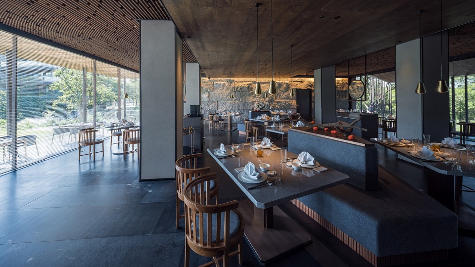 The hotel is renovated from five old buildings originally on this site. The challenge to architects is how to meet the needs of modern hotels in an ecologically optimal way. After making a large number of on-site investigations, architects completed the structural transformation and integrated system layout with extremely minimal intervention, so that the building could be connected with surrounding forest and water system smoothly.