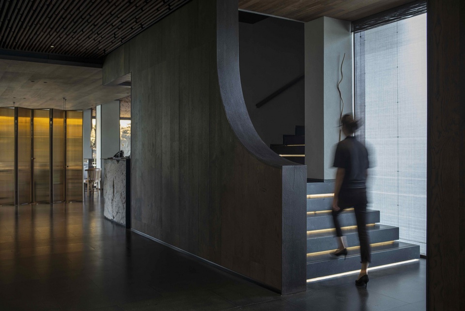 With recycled old wood boards, rusted steel and water-washed marble as the main material of corridors, the designer introduced the concept of “time” into the space – when the original lustre and the sense of touch of the material evolved slowly in the wind, frost, snow and rain, the passage of time was also recorded in every stone and every piece of wood at the same time.
