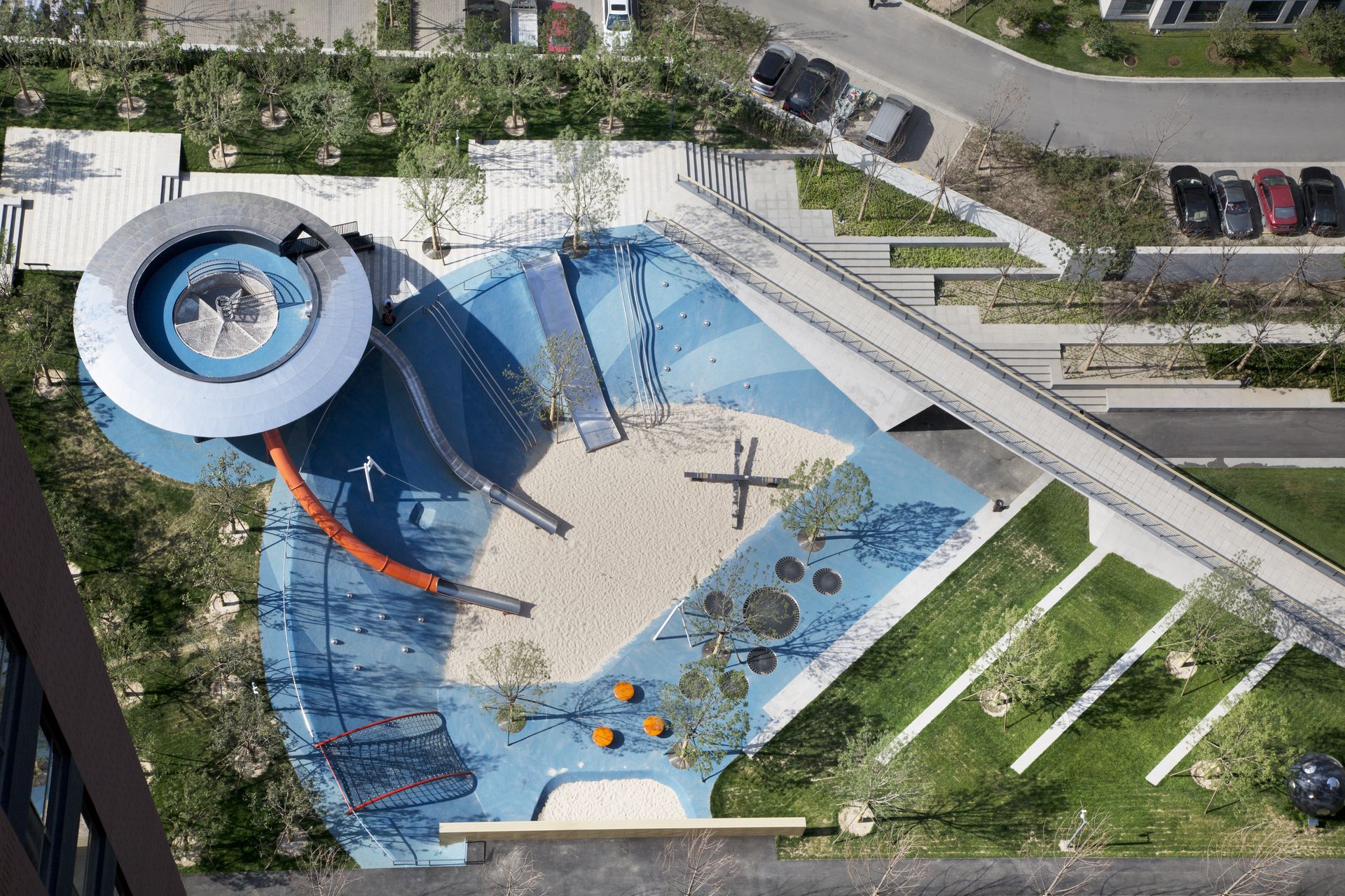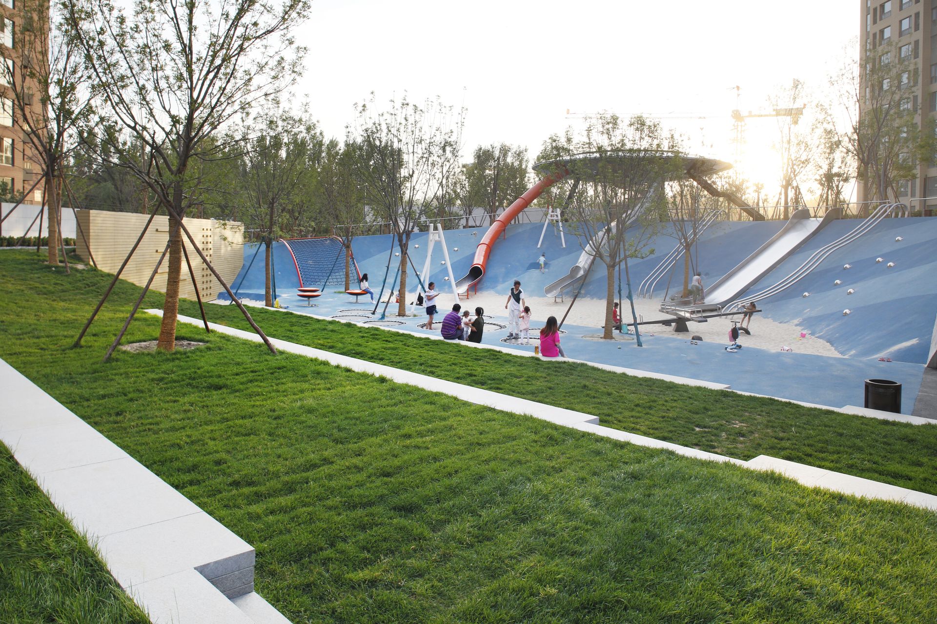 Jiadu Central Park is located in a newly built community 30 kilometers away from downtown Beijing. The park is a linear space with an average length of 65 meters and a width of 55 meters. It is surrounded by four high-rise residential groups. As an active exploration of an ideal urban community park, Jiadu Central Park starts from four aspects: building community culture, meeting daily needs, carrying out ecological environment education and providing healthy environment for the next generation. All kinds of in-depth thinking are fully reflected in every design detail of the park, aiming to create a community park with complete functions, distinctive features and certain era significance.