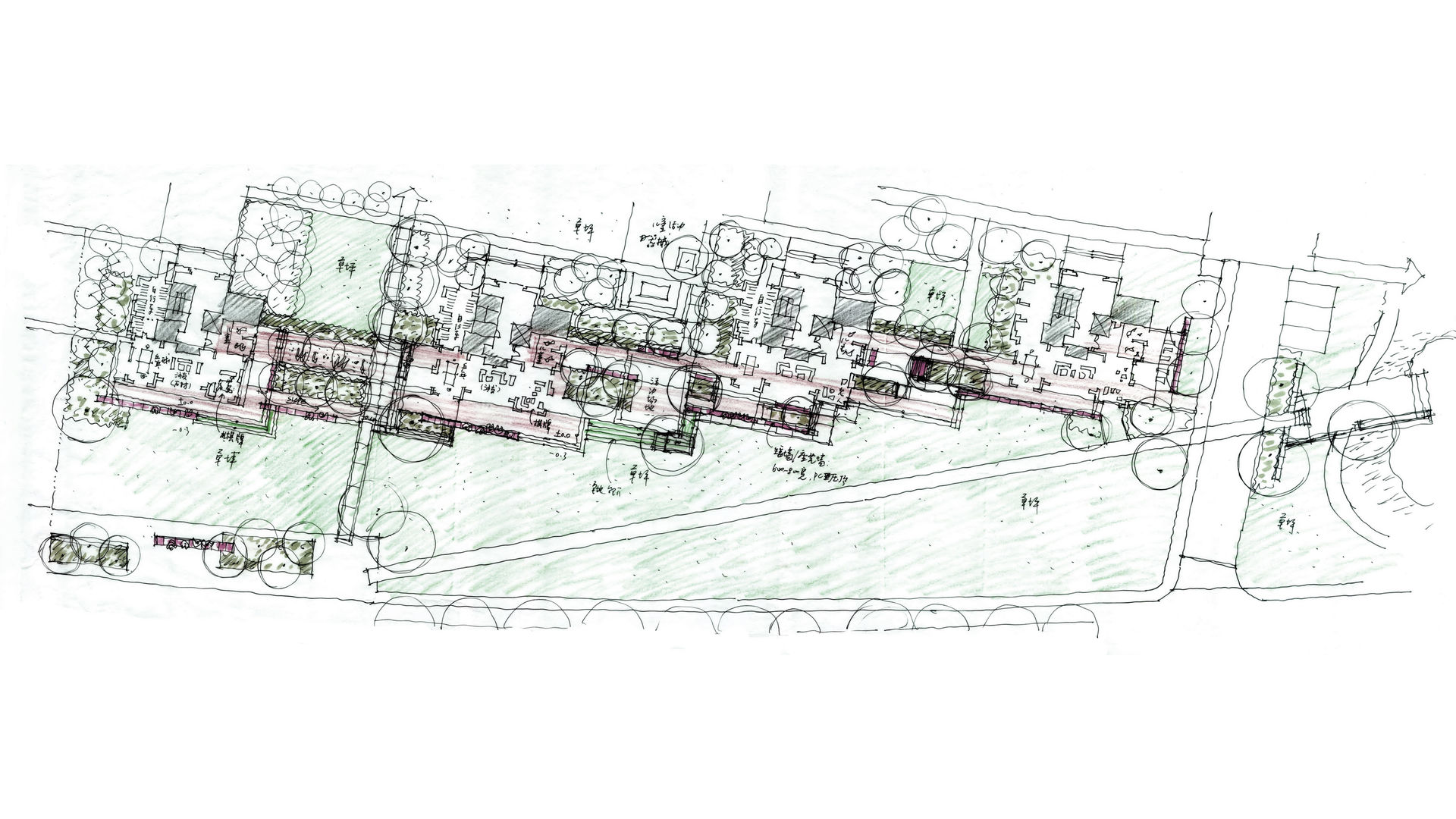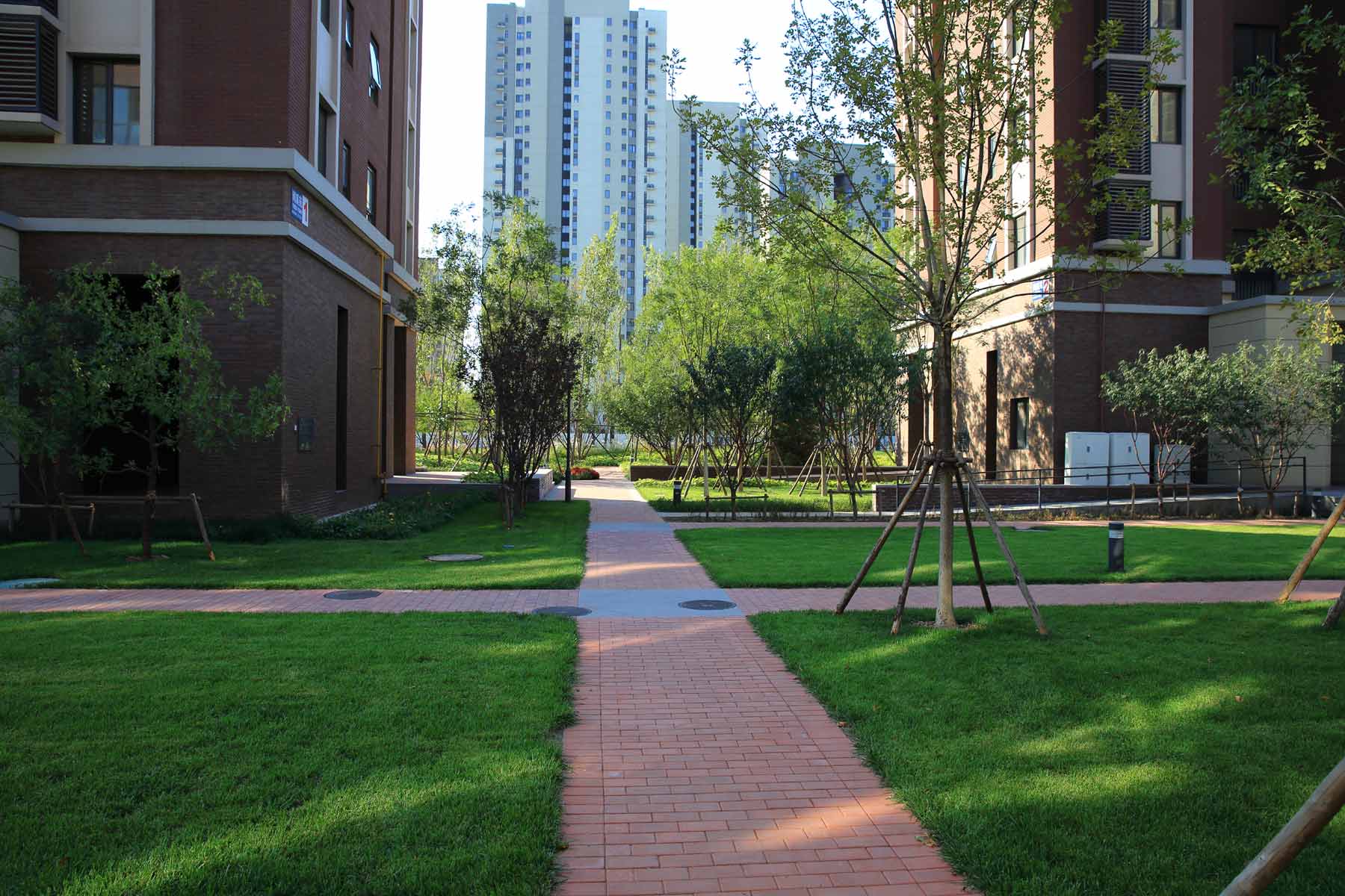 The landscape design proposal for this 1.5ha community uses minimalistic design approach which provides activity lawn, shade structure resting area, children's playground and multifunctional space between buildings. The design has successfully developed a comfortable, beautiful and functionally comprehensive community environment with only 243RMB per square meter as its budget.