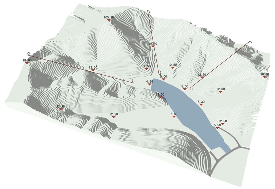 The 150m long broken line shaped water table in the catering area constitutes an impressive mountain residence resort scene. The zigzag water surface, scattered houses and the platform base with rich elevation difference create a human space sequence. People wander and stop in this sequence and experience the thousands of scenes of mountains and lakes. Mountains, water, people and buildings are combined into a close system, laying out a close "accompanying" relationship between man and nature.