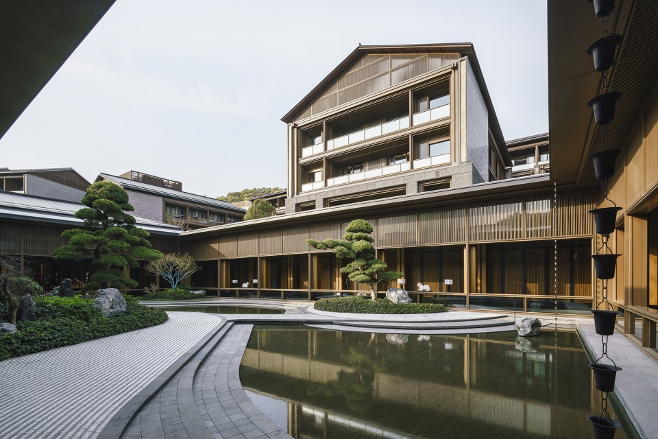 The public areas and main guestrooms of the hotel are arranged in the east of the site, where the gradually elevated height difference offers unblocked lake view and good privacy for various areas. The north and south slopes and valleys in the west of the site are designed with independent suites. The cluster layout not only forms an internal courtyard, but also establishes a diversified pedestrian system. The Nourishing Club is located in the northernmost, and enjoys multi-layer and multi-perspective views.