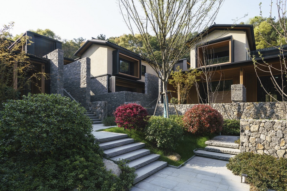 The construction basically inherits the rural practice of this region to improve architectural quality through integration of placeality, tradition and modernity in a “new-local” style in combination with modern techniques and usage requirements. Different techniques are employed for different blocks of buildings in façade design. The public area, independent suite area and Nourishing Club in the east use traditional garden style for reference, while the small-sized guestrooms in the valleys shape the image of Jiang-Nan residence in regions south of the Yangtze River.