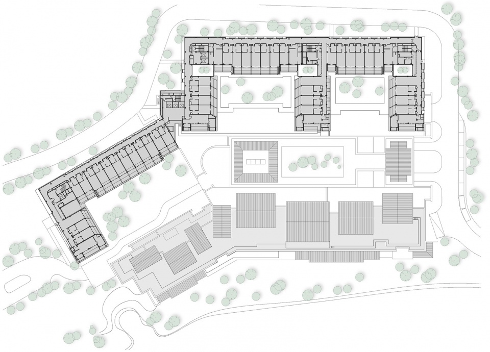 在布局过程中,对视线的整体规划起到重要作用。建筑师没有选择在用地范围内均布建筑,而是对山体南麓进行了大段的留白。空出的南麓山景成为了一处纯粹的自然景观对景。