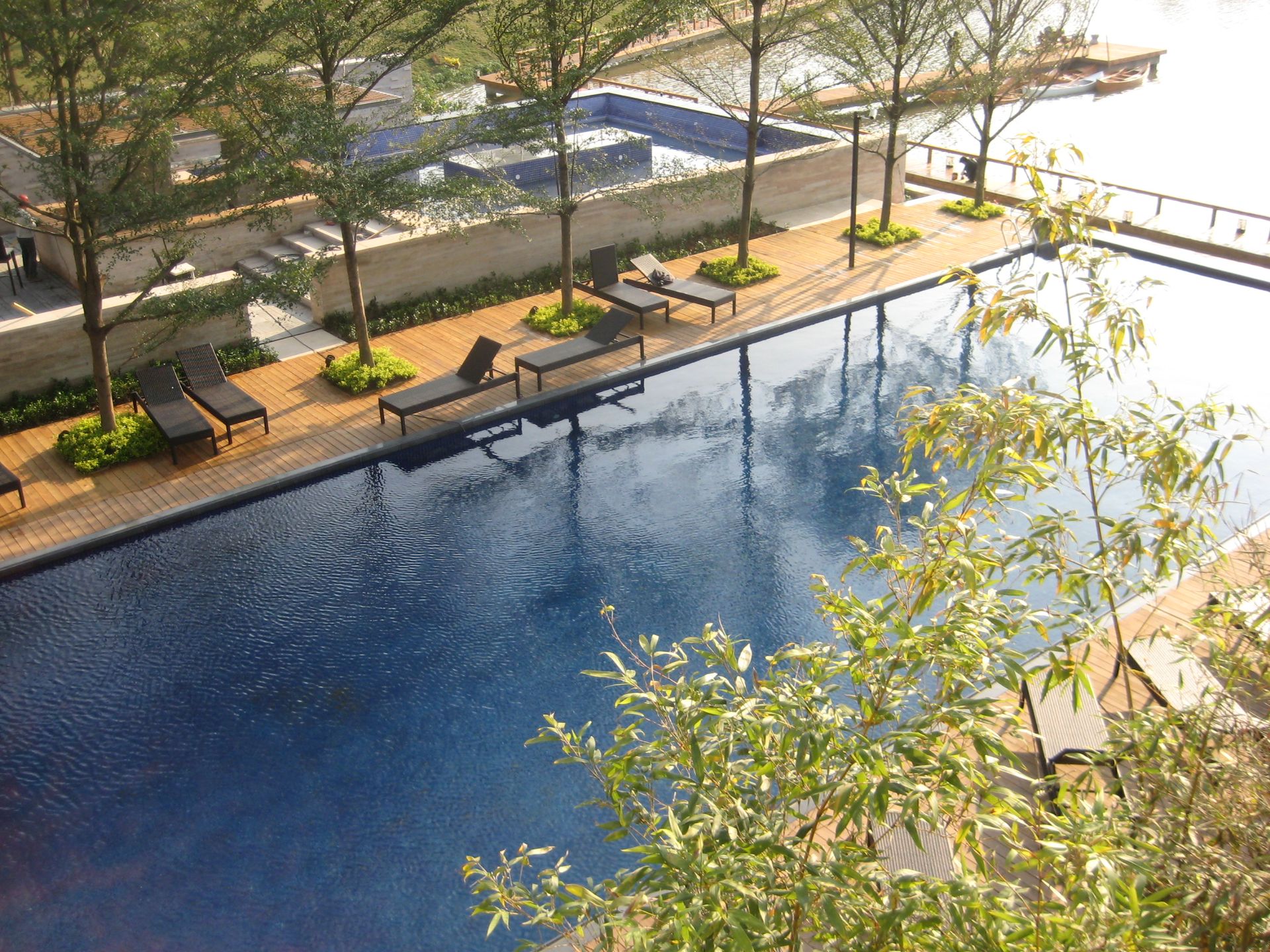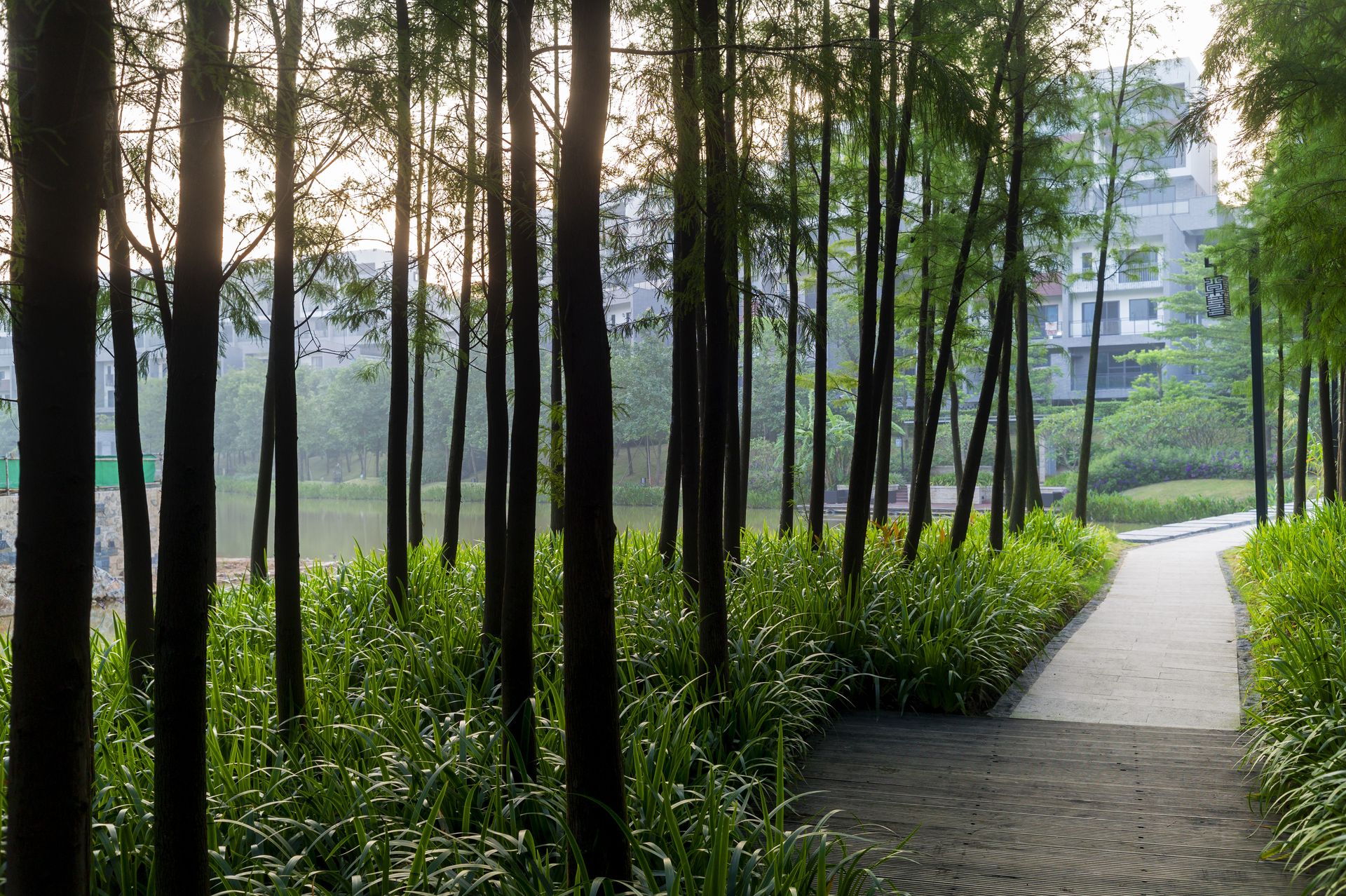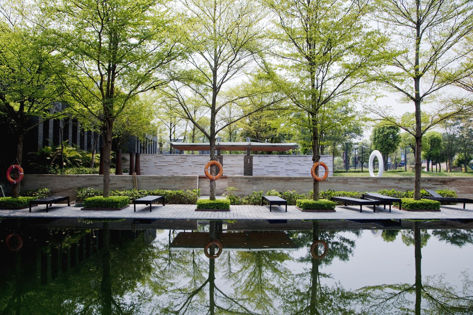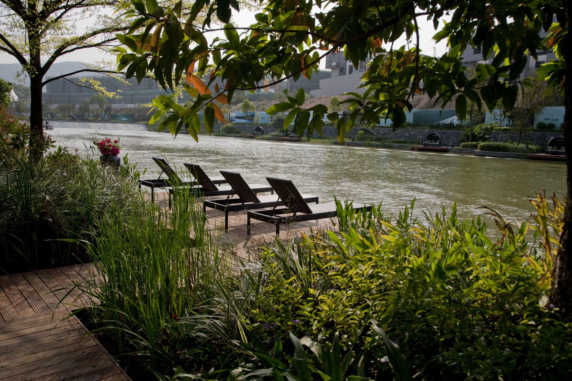 Tangyue Resort is located within one-hour drive from Shenzhen city in a beautiful natural setting. The site is surrounded by a golf course and a state park. The lake landscape design follows the resort goal: ‘To create a low-density oriental living environment with contemporary Chinese aesthetics ’. Modern design principles are utilized to create a high quality landscape, which meets both Chinese landscape perceptions and contemporary vacation needs. Synthetic landscape, diverse lakeside landscape and mountains in the distance are manipulated to achieve a quiet and pleasant place.