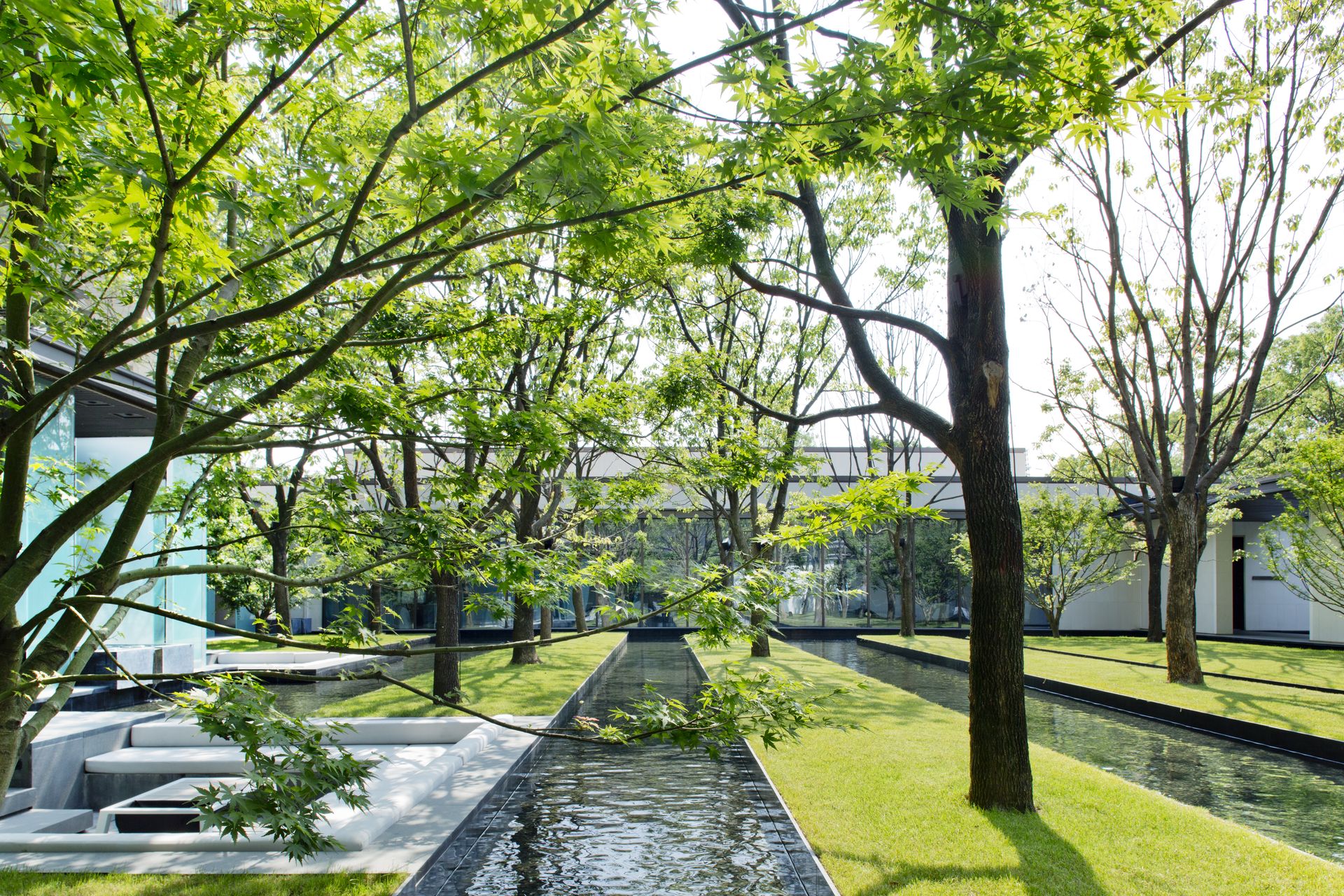 项目的案名取自于文脉深厚的宁波天一阁,景观设计上也希望能对中国的古典意向有所传承,在传承过程中,我们避免逐字逐句地对传统去解读,而试图进行整体把握其精神和内涵。在这个过程里,我们希望通过园林景观,激发起人对自然的感知,认识,和欣赏,以弥补现代城市生活对于任何自然的割裂,让人能更谦逊地对待自然。对我们来说,园林中的自然,既不是古典园林中的微缩山水,也不是现代景观中的乡野田园景观,而是自然中更本质的基本元素:时间、光、水、木、土、石。