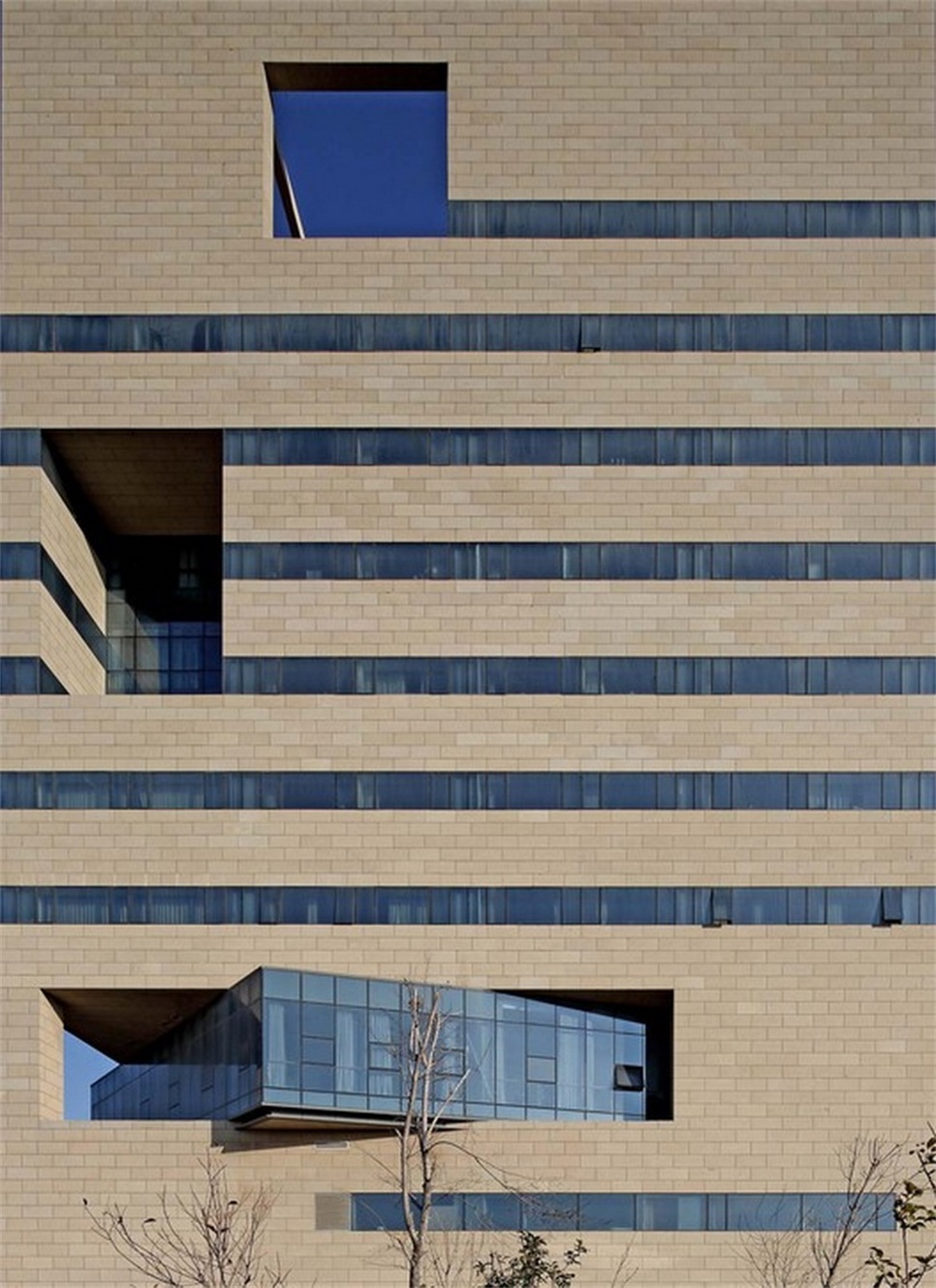 Changji Prefecture is located at the north foot of Tianshan Mountain, with long and cold winter and short and hot summer. In order to adapt to this severe climate, building energy conservation is fully considered in the design. The method of stone curtain wall and strip window is mainly adopted in the facade design to avoid large-area glass curtain wall and ensure good thermal performance.