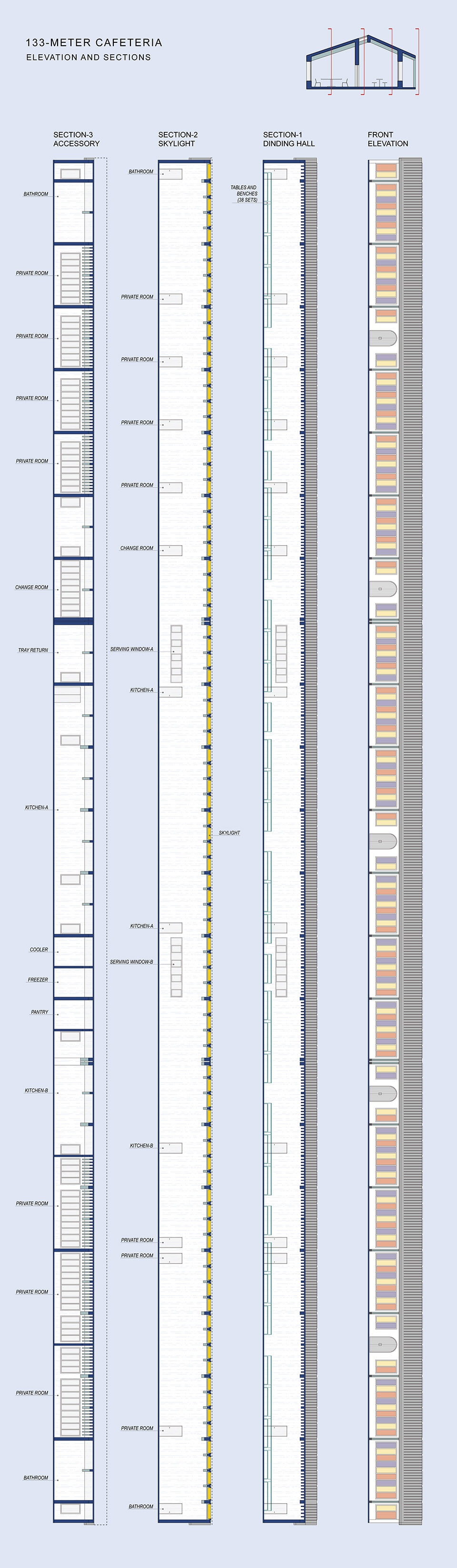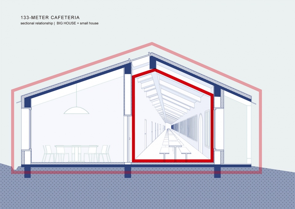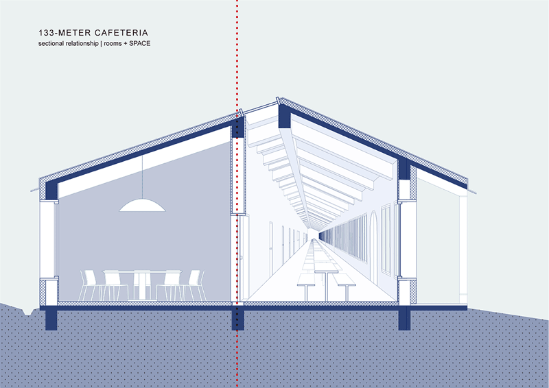 ▼百米食堂剖面图 – 百米房间 vs.百米空间,section: the ROOMS and The SPACE