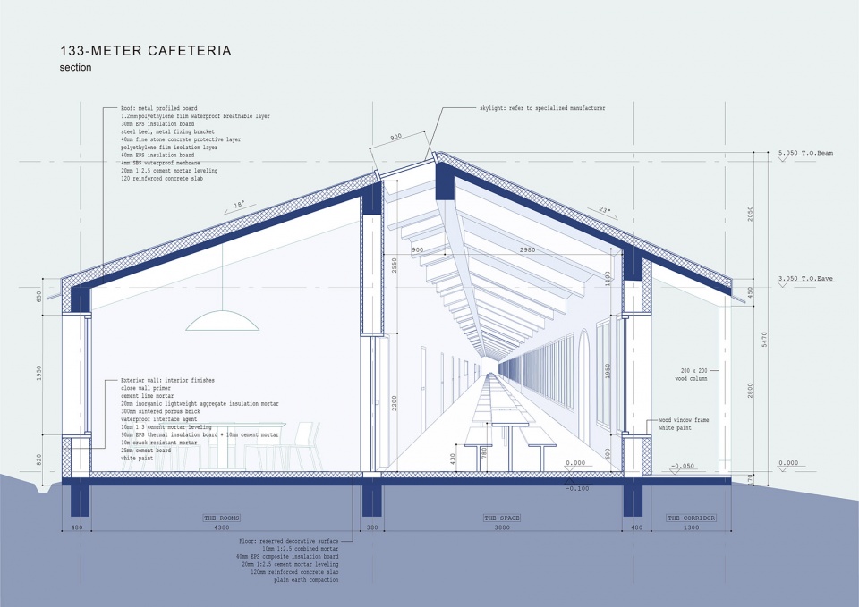 The Ekatometer Cafeteria challenges the stereotype of a typical Chinese institutional cafeteria to be massive and alienated. The architecture captures the disproportional characters of site dimensions and turning such difficulties into a reading of vernacular buildings; representations of acquaintance, intimacy, and pleasure of the village and home are thus revealed again. The Ekatometer Cafeteria opens both to the residents of the village and all visitors. Just as the “Hundred-Family Banquet”, this cafeteria shall be a place for each and every one.