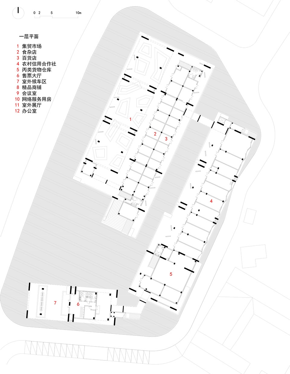 The Wantouqiao Township Center takes the unit scaffold structure which is commonly used in the market place as the spatial prototype. The group is constituted as a permanent public building with a complex system to replace temporary, non-standardized, chaotic and dangerous street market by the way of extraction, reconstruction and translation. The township center functionally provides a platform with one-stop service including a business center (market), a logistics center, an e-commerce center, a passenger transportation center, etc.; It spatially fills the lack of public space and continues the tradition of customs in terms of time; Moreover, it stimulates the revitalization of rural industries economically; culturally, it is the spiritual center to enhance the cohesion of the township.