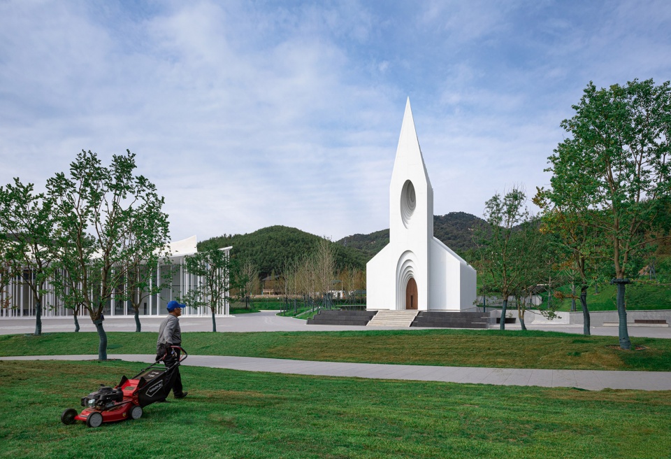 这个被提取的原型,依然拥有具有尖顶和花窗的钟楼、层叠内嵌拱门、巴西利卡式的空间布局等教堂所具有的经典组成要素,但多数的装饰要素均被抽象化 – 这并非源于对装饰的厌恶和反叛,而是期待以相对纯粹的体量展露出属于此一命题相关的原型与体验层面的关联,以及与其相关的核心议题:神性与仪式感。