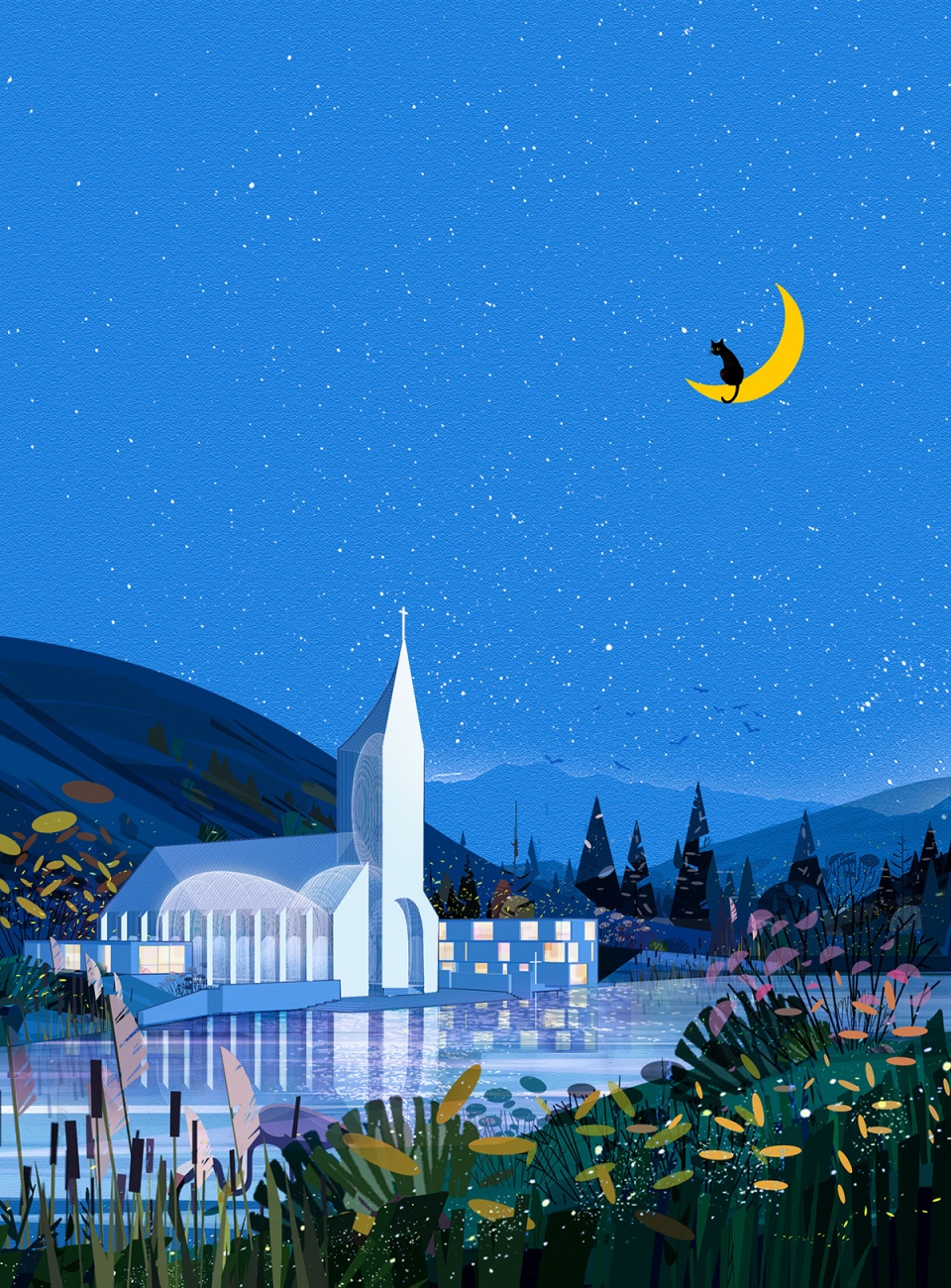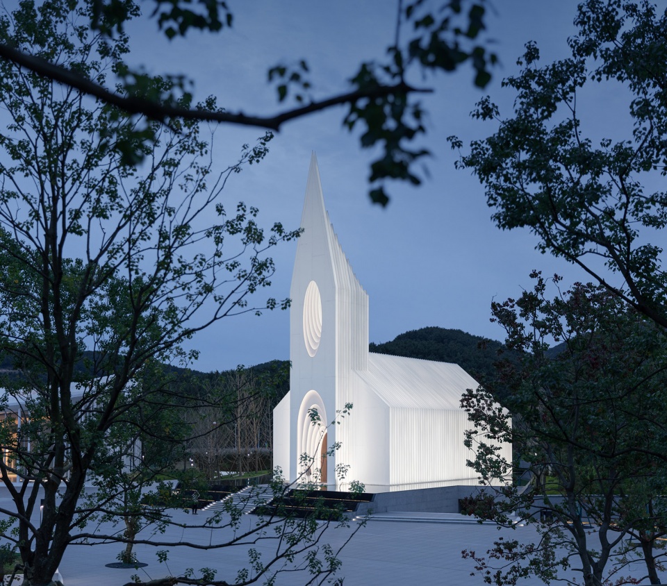 层叠的白色切片在柔化室内光线的同时,也包裹了建筑的主体框架和构造系统,使整个月空礼堂呈现出一种简明而抽象的氛围,它既是属于当代的审美倾向,又是对传统教堂形态的呼应,是传统与当代一种融合。