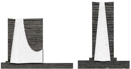 诚然如此,腔体的原型在大量先例中早已有之,但基本上皆是在体量轮廓与腔体空间之间,形成了一个图底关系上虚实分明的横剖面。比如卒姆托的克劳斯兄弟小教堂(Bruder Klaus Kapelle),先行勾勒出内部腔体空间的轮廓,再进行体量完形。