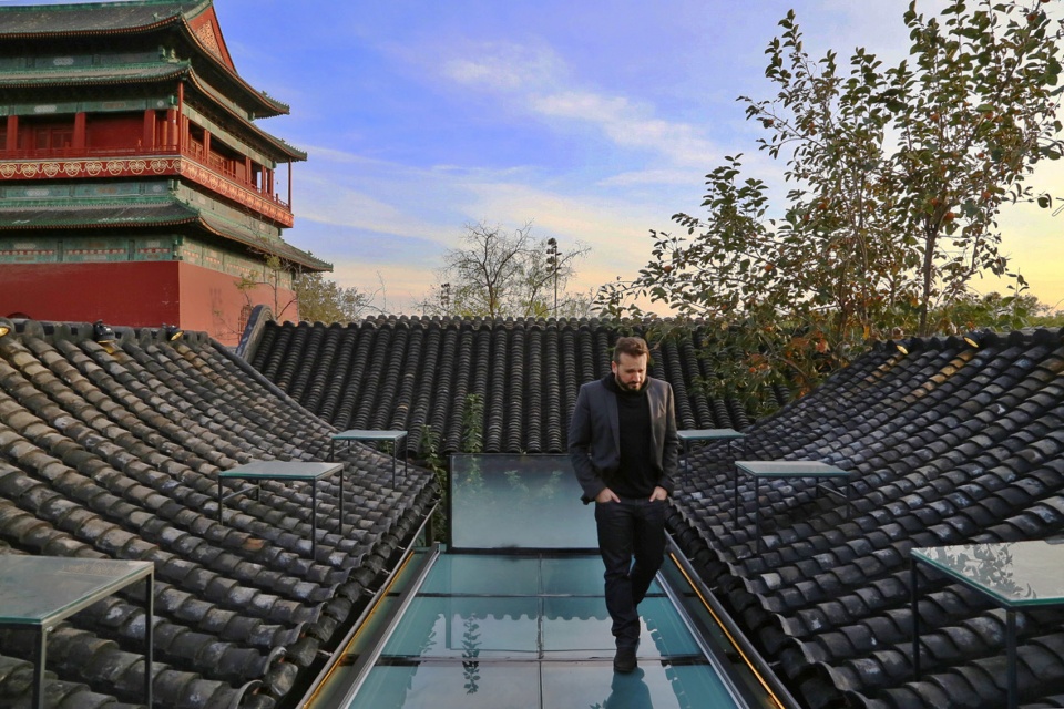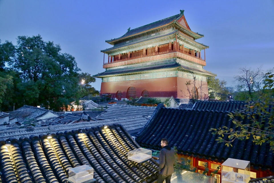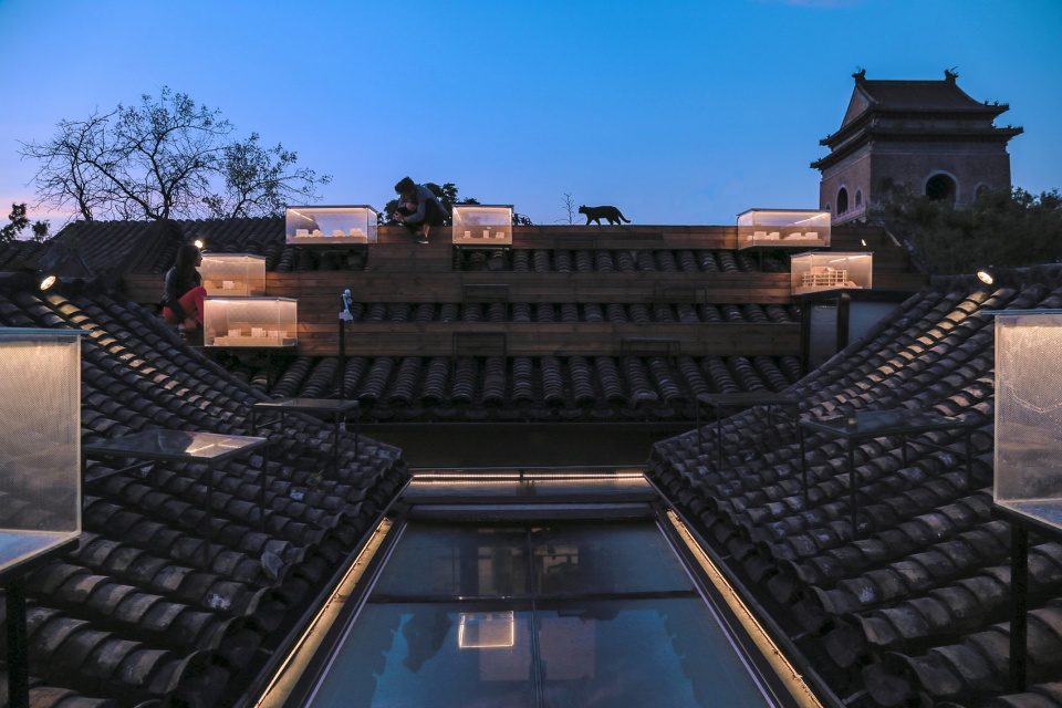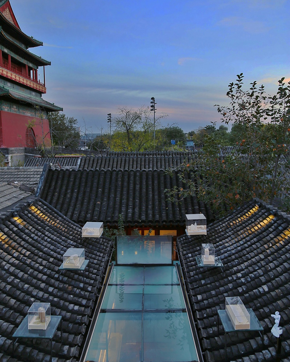 In traditional Chinese architecture, the roof form and size are usually used to distinguish the building`s importance, but is not defined as a usable space itself, only the volume under the eaves has its corresponding function. The addition of the glass block in the courtyard introduces a new element and makes use of the roof space that has never been usable. It changes the way people move through the space, but also how existing parts are perceived: The distance to Drum and Bell Tower seems to shorten and the relation to become more intimate through the elevation of the eye level.
