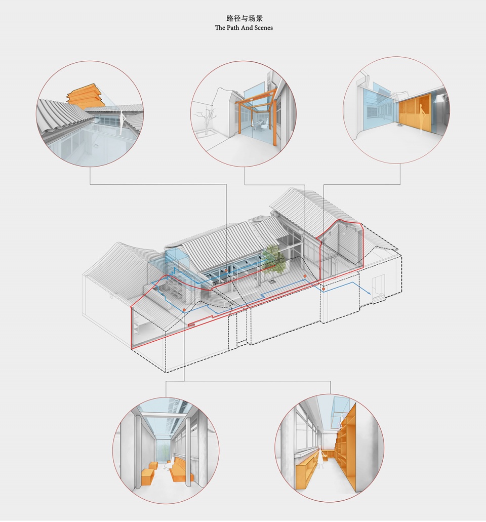 The renovation of No. 7 courtyard reorganizes the traditional spatial concept of a Chinese courtyard, adding new spatial nodes on top of a series of new rooms. Traditional and contemporary spirits are fused under relatively low-cost conditions.